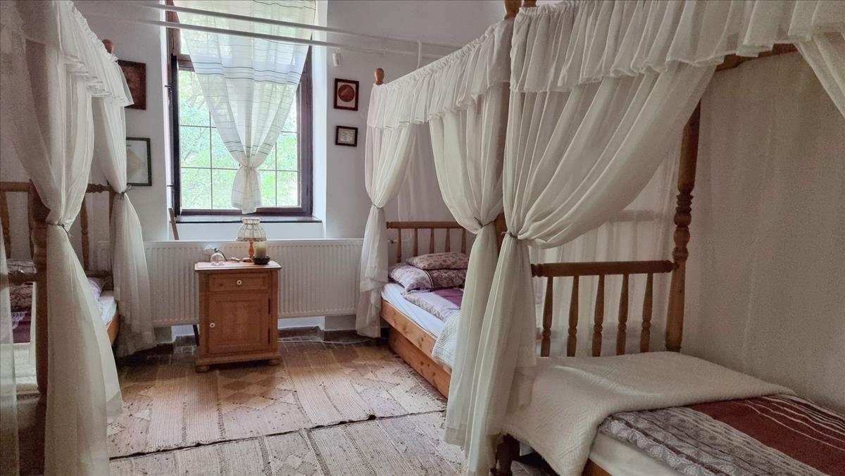 The first building is currently suitable for hosting guests and has previously operated as a tavern and guesthouse. Thanks to its layout, it is perfect for hospitality operations: it features a spacious dining area that can comfortably seat up to 40 people. It also includes two bedrooms and a bathroom.