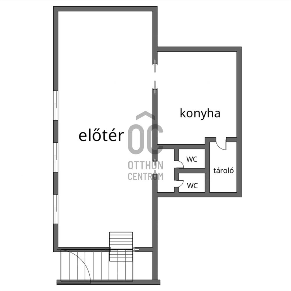 Belső elrendezés: tágas főtér + kisebb helyiségek