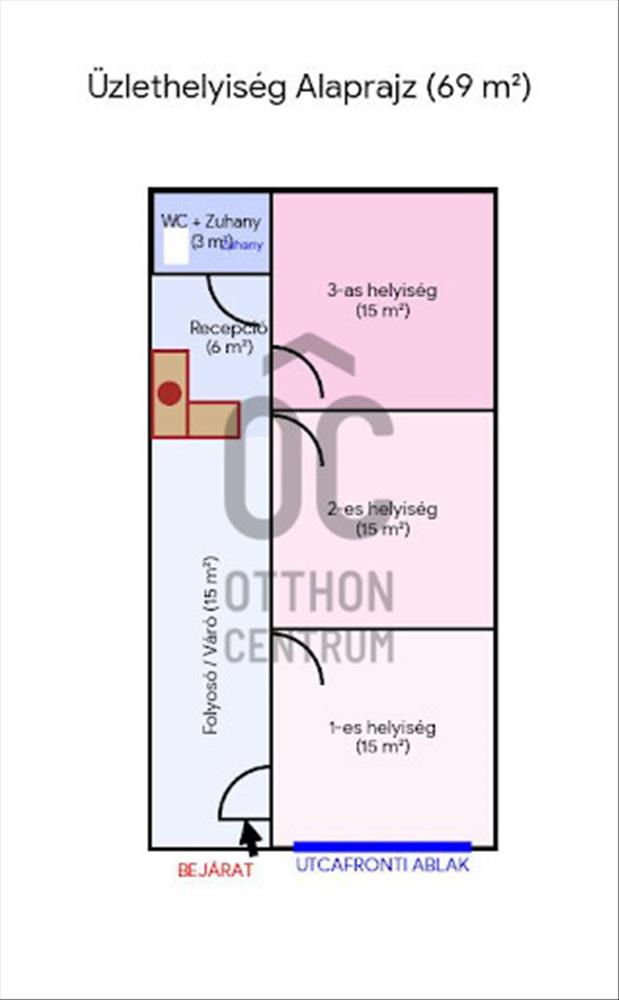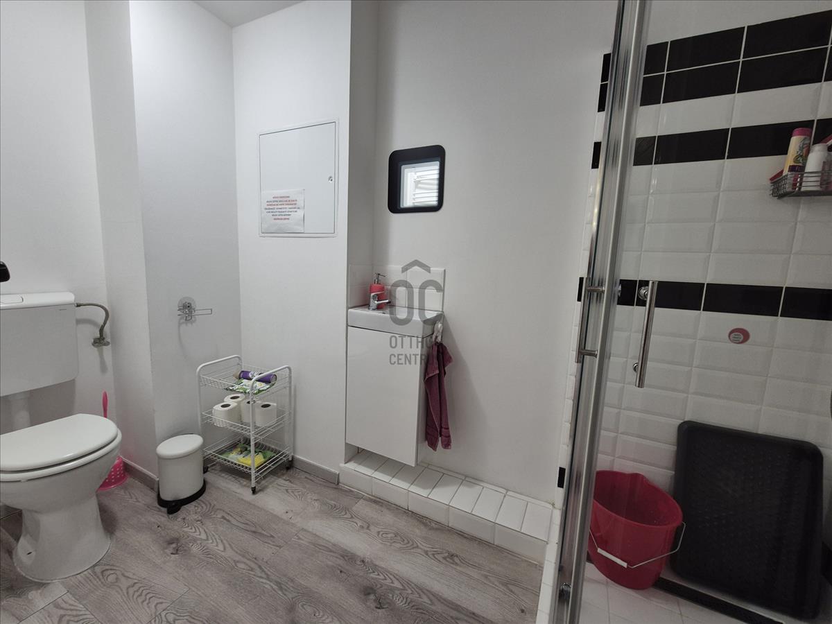 Jelenleg 3 különálló helység, egy vendégváró, recepció és zuhanyzós fürdőszoba található benne, de a válaszfalak mind gipszkartonból építettek, szabadon alakíthatók.