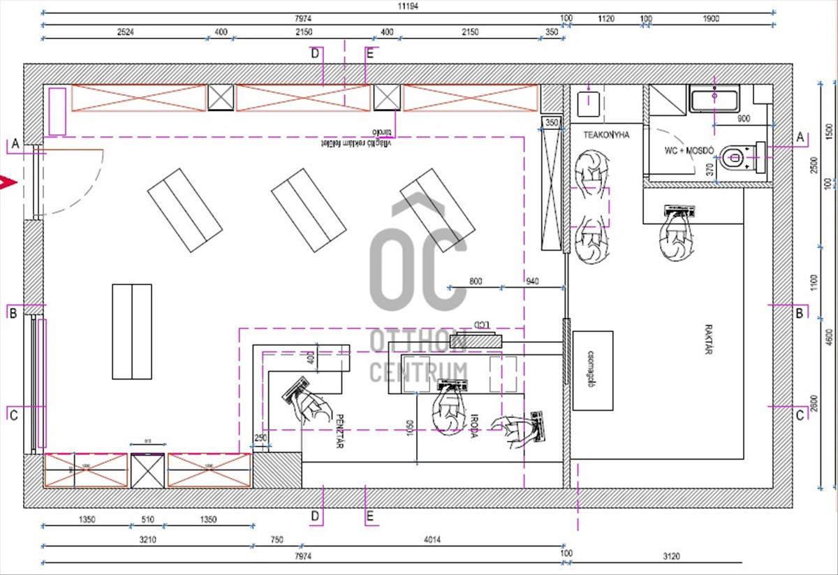 A belső válaszfalak mind gipszkartonból épültek, így a tér szabadon alakítható vagy akár teljesen egybenyitható. Kialakítása miatt webshopoknak átadóponttal, kiskereskedelemnek vagy bemutatóteremnek is tökéletes.