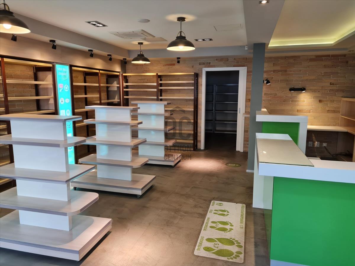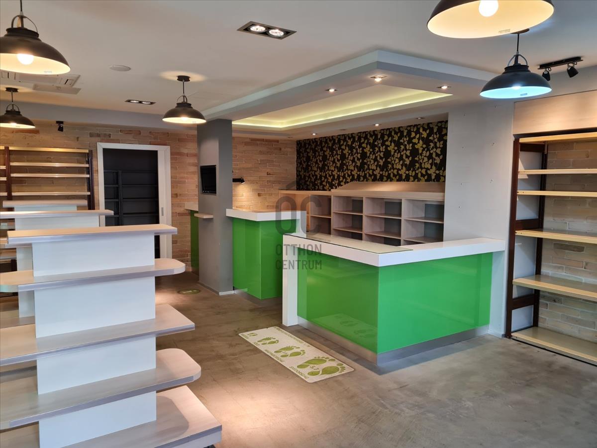 Belső kialakítása nagyon praktikus, a 3, 8 méteres belmagasság miatt pedig kifejezetten tágas a térérzet. Jelenleg egy nagy, világos eladótérből (igényes beépített pulttal), egy polcozott, nagyméretű raktárból és csomagolóból, valamint egy teakonyhából és egy kézmosós mosdóból áll.
