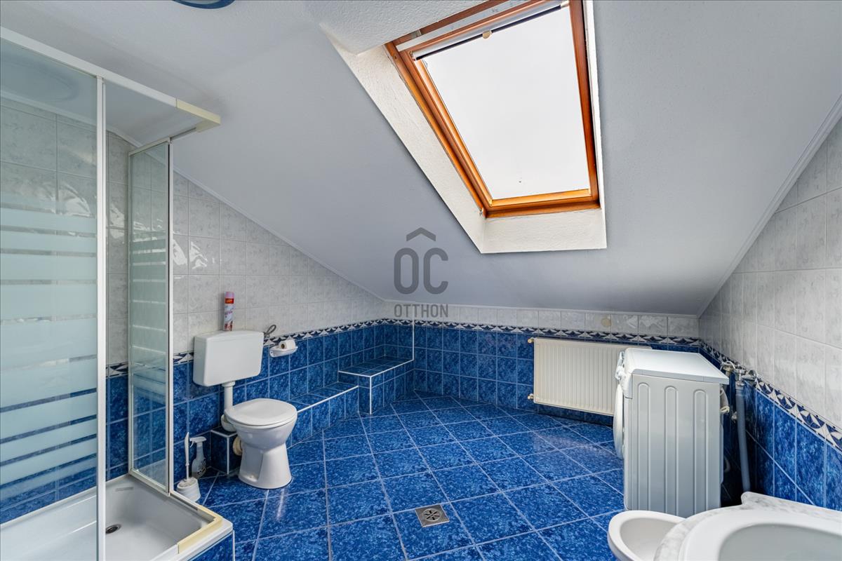 Az épület alatt egy 2, 5 m belmagasságú pince biztosít extra raktározási lehetőséget.