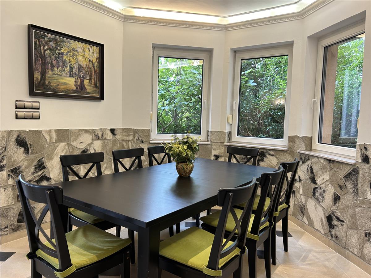 Az ingatlan tágas nappalival, 9 különálló hálószobával, nagy étkezővel, több fürdőszobával, illetve részben fedett, hatalmas terasszal rendelkezik, ahol a családi és baráti összejövetelek felejthetetlenek lesznek. Extrák: szauna, 4 autó számára kényelmes garázs.