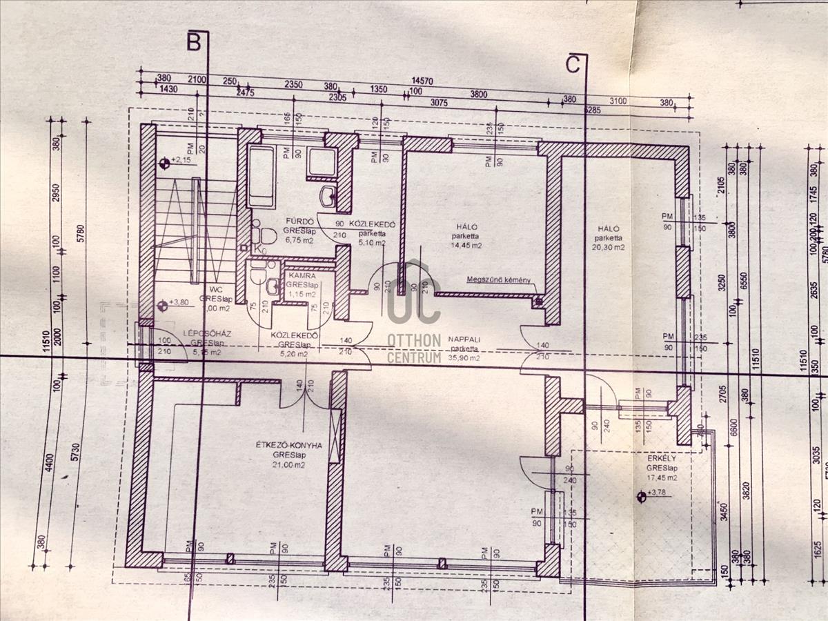 2. emeleti lakás : 140 m2 (hasznos alapterület: 76 m2)
