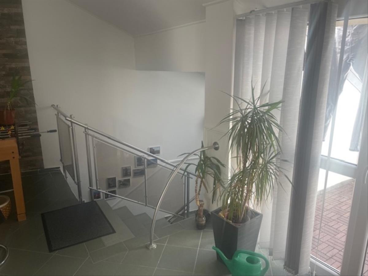 Felosztása: előtér, mosókonyha, spájz, 2 fürdőszoba, mosdó, közlekedő, nappali-konyha-étkező, 2 szoba, lépcső tér.