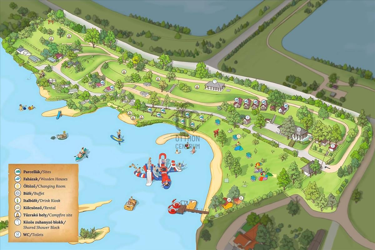 Ez a csaknem 4 hektáros, közvetlen vízparti ingatlan ideális választás kemping, üdülőhely, strand, tábor, rendezvényhelyszín működtetésére.