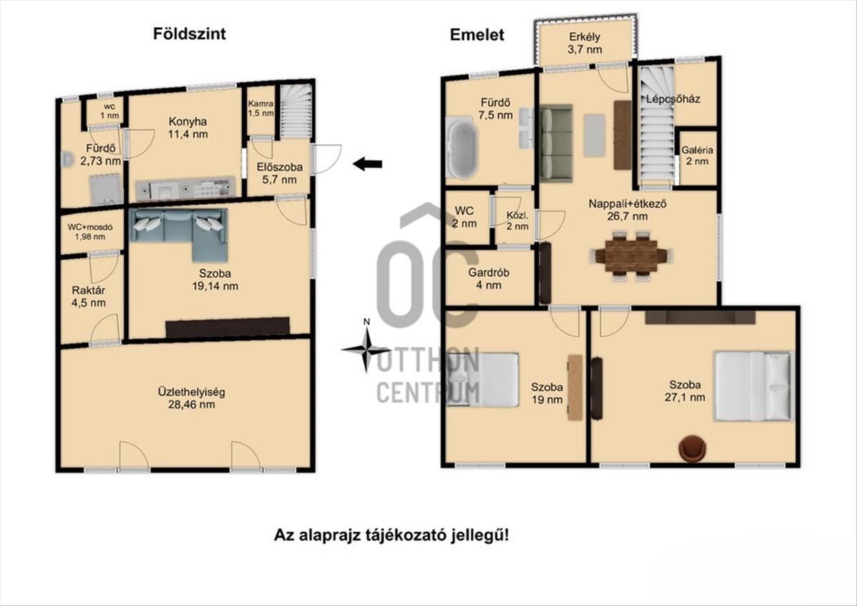 - 137 m² lakótér – saját használatra vagy bérbeadásra, kétszintes elrendezéssel