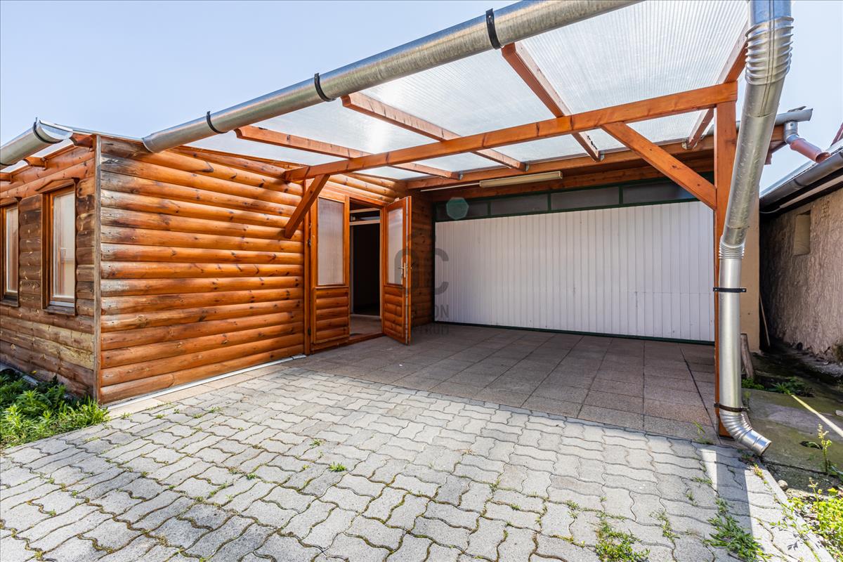 A telken található egy 75 m2-es épület, melyben 2 állásos 30 m2-es garázs, tároló és fedett terasz található.