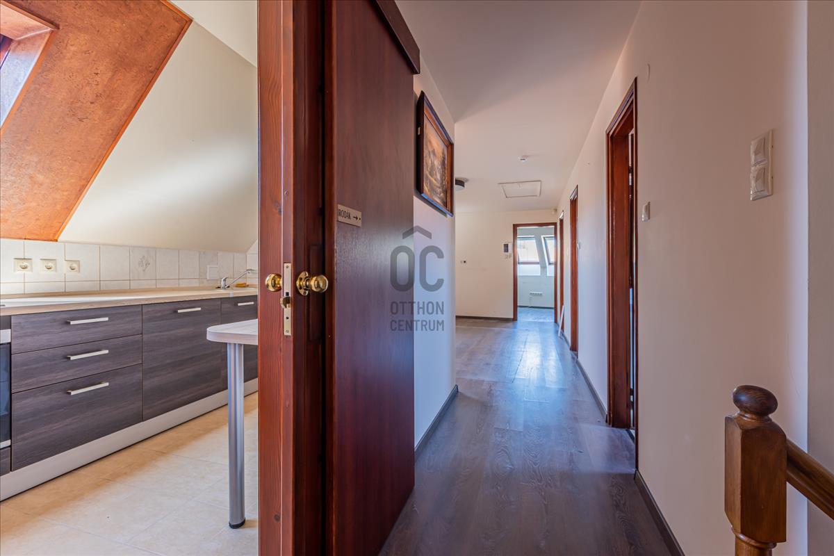 A tetőtérben, 5 szoba, étkező, konyha és 3 fürdőszoba, 1 konyha, 1 étkező, 2 wc, és egyéb helységek kerültek kialakításra.