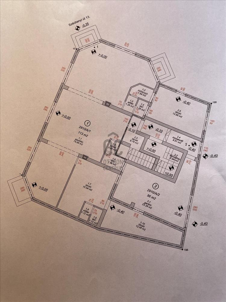 Földszinten 113 m2-es bejáratott üzlet jelenleg bérlésbe van, egybe nyitva. Egy részes üzletnek is használható, de 3 részre is osztható 3 kisebb üzletnek vagy irodának is kialakítható. Külön bejárata van a 3 helyiségnek és 3 vizesblokk is külön van. Egy kis el falazásra szükség van ha több üzletet szeretnének.