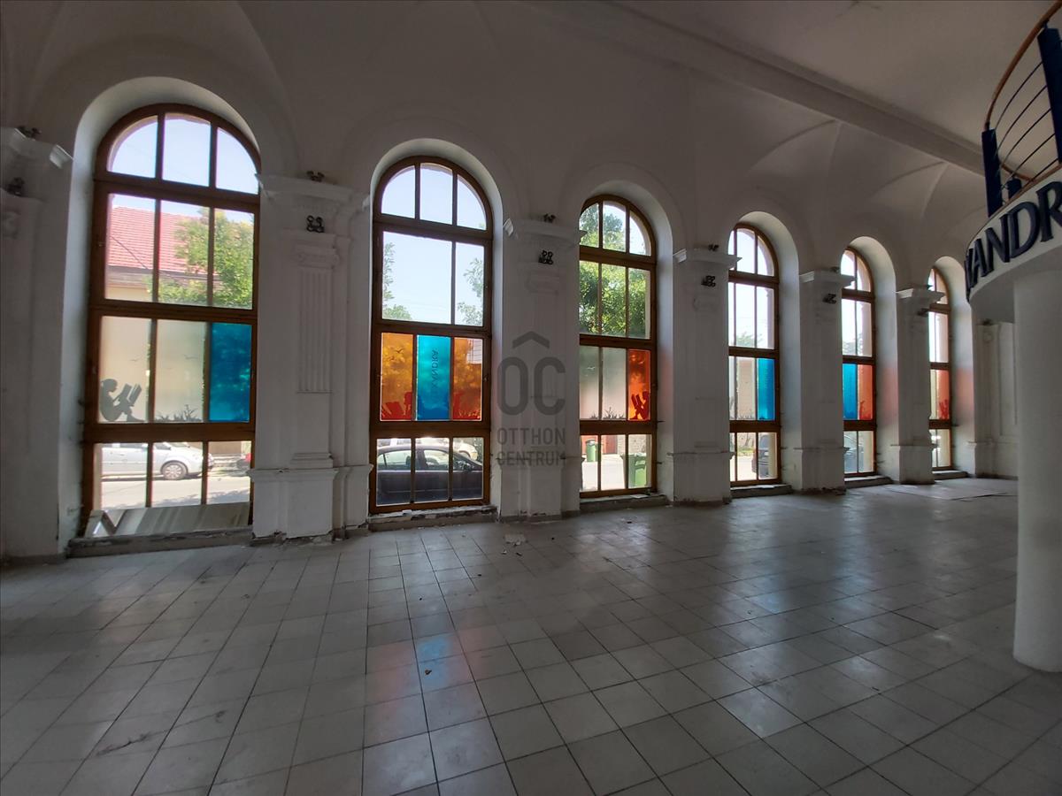 Az üzlethelyiség két szintes, melyből az emeleti szint valójában galéria. Bejárata a tér és a Hunyadi utca közötti parkolóból, átjáróból nyílik. Kirakatai a tér felé néznek. Belső tere a földszinten nagy ügyféltér, valamint szociális rész és gépház. Az emeleten galériaszint kapott helyet szociális blokkokkal és egy tér felé néző és nyíló terasszal.