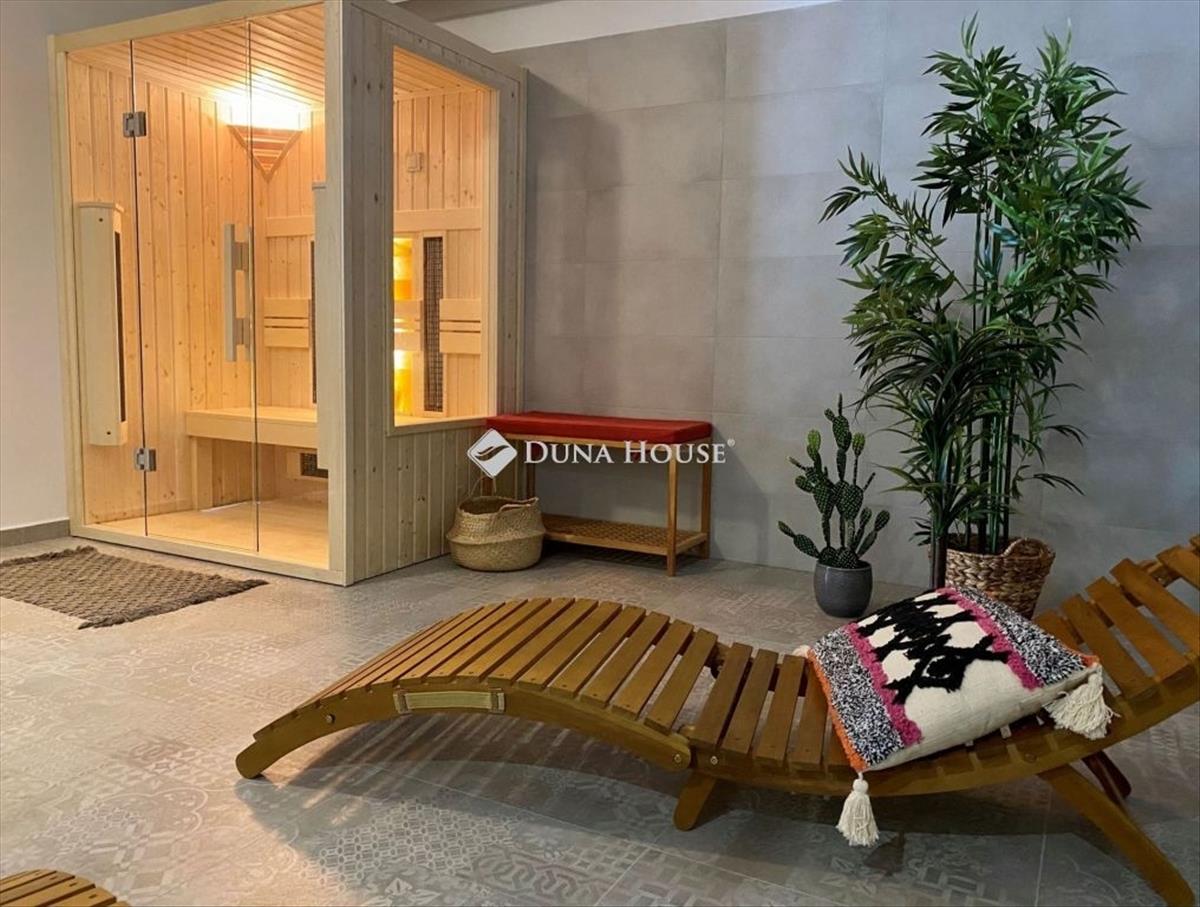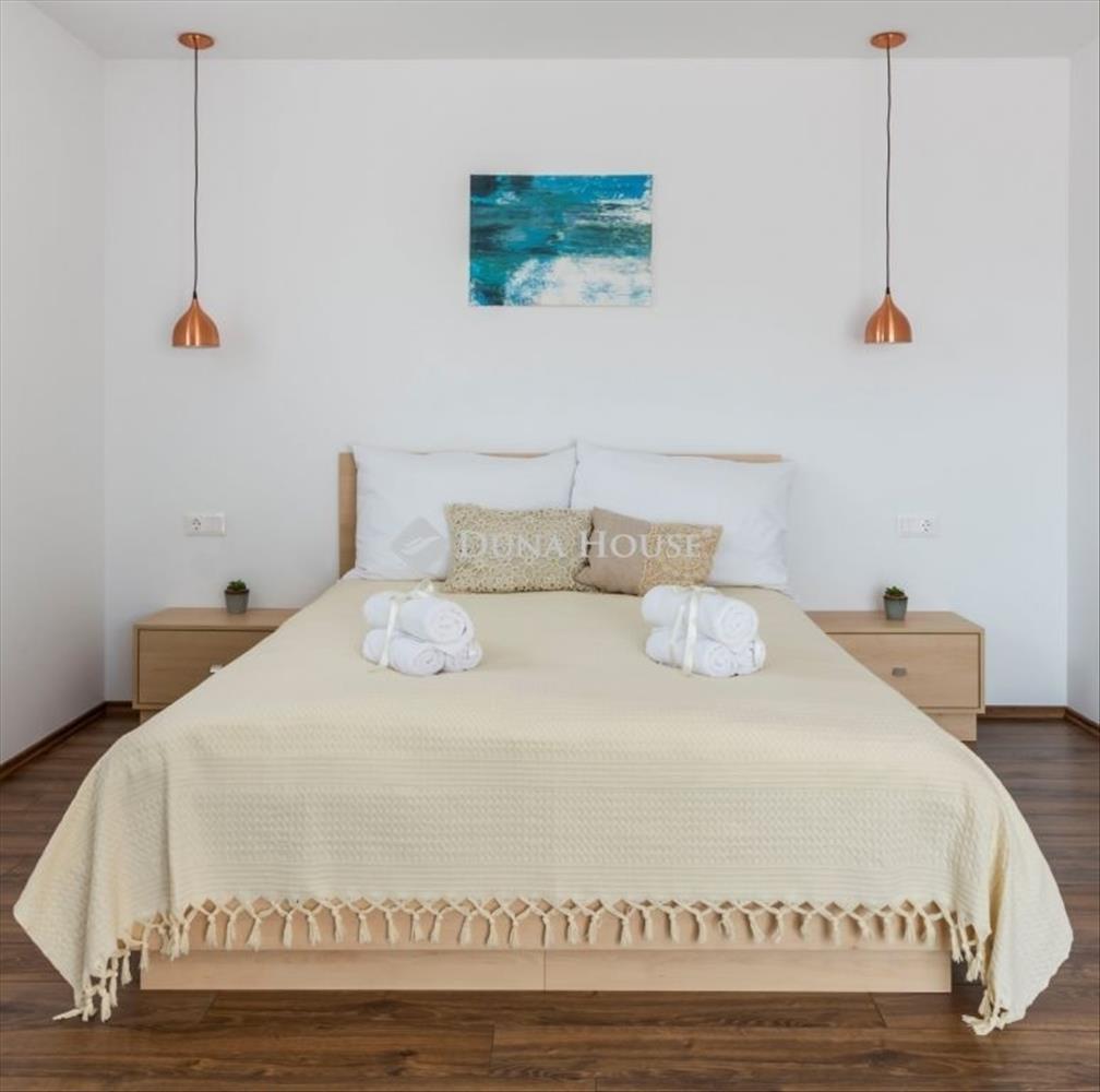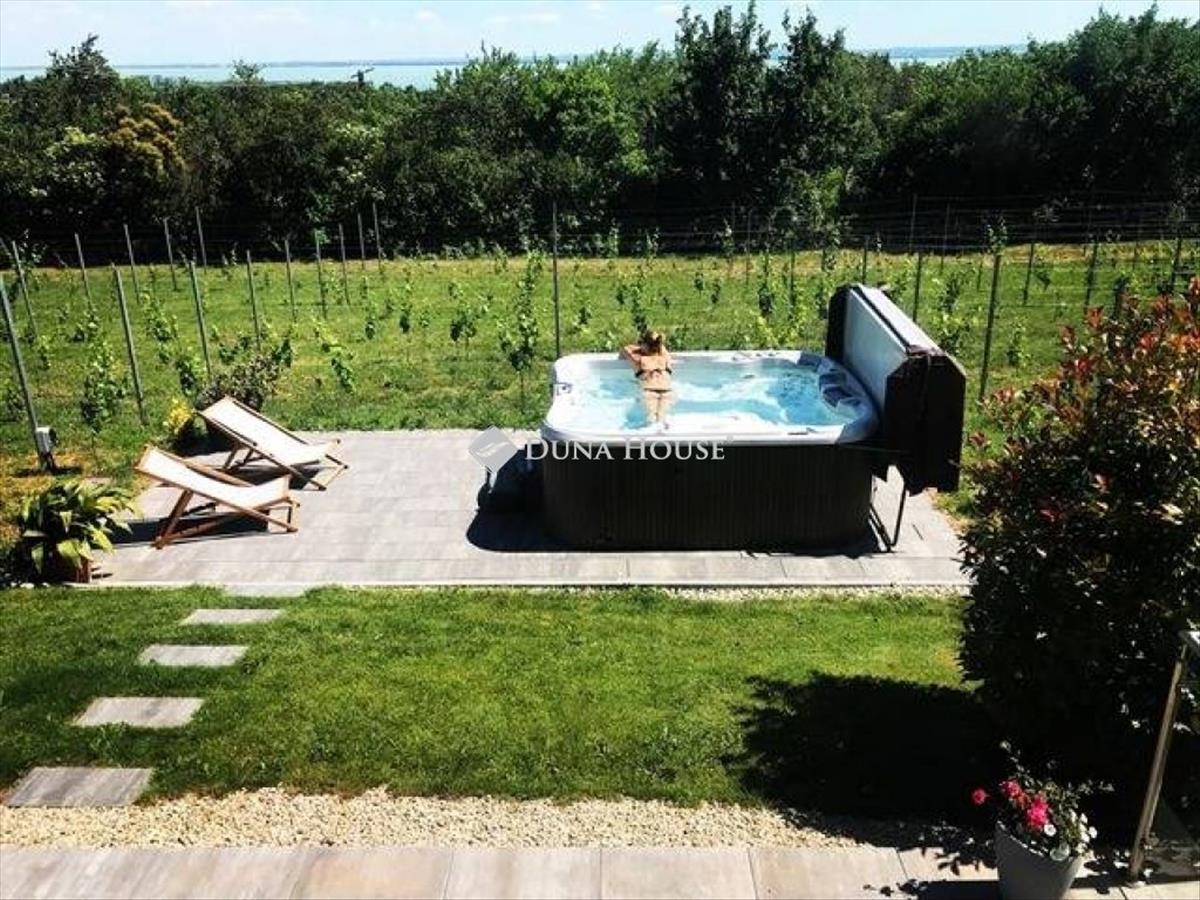 Eladó Paloznakon egy elvehetetlen balatoni panorámával rendelkező, gyönyörű, 2019-es építésű, a helyi építészeti stílusba illeszkedő, 3 szintes, 332 m2-es modern vendégház, amely családi nyaraló, vagy némi átgondolással családi ház funkcióra is alkalmas! a vendégházban 4 apartman található, saját fürdőszobával. Különleges adottság, hogy a 4 apartman mindegyike balatoni panorámával rendelkezik! a közös terek - azaz a konyha-étkező, a kiszolgáló helyiségek és a borospince a félszuterén szinten találhatóak, illetve egy 45 m2-es gyönyörű teraszt is élvezhetnek a ház lakói, melyet hangulatos szőlő ültetvény vesz körbe. a kertben egy jacuzziból is élvezhetjük a Balaton látványát és a wellness helyiségben szauna is van! Amennyiben Ön családi házként szeretné használni ezt a gyönyörű ingatlant, ehhez egy átalakítási ötletet és egy látványtervet is csatoltunk az alaprajzok közé. a fűtés-hűtést hőszivattyú biztosítja fan-coil rendszerrel, padlófűtéssel. Emellett be van szerelve vízlágyító, elektromos alumínium redőnyök, automata öntözőrendszer, illetve egy szennyvíztisztító kismű. Az öntözéshez esővízgyűjtő van telepítve. Az ingatlanra általánosan elmondható, hogy igényes berendezések, szerelvények és burkolatok jellemzik (pl. Hans-Grohe csaptelepek, öntött márvány zuhanytálcák, minőségi olasz burkolatok vannak). Az ingatlant kamerarendszer védi. a telek egy 2790 m2-es gondozott terület, mely igény esetén további területek megvásárlásával bővíthető. Udvari parkolóhely 4 autó részére van kialakítva. a látvány és a környező dombság nyugalmat áraszt, a hely feltöltődésre nagyon alkalmas, jöjjön el, tapasztalja meg Ön is! Az ingatlan magántulajdonban van, tehermentes. Hitel.hu - Hasonlítsa össze a bankok lakáshitel ajánlatait