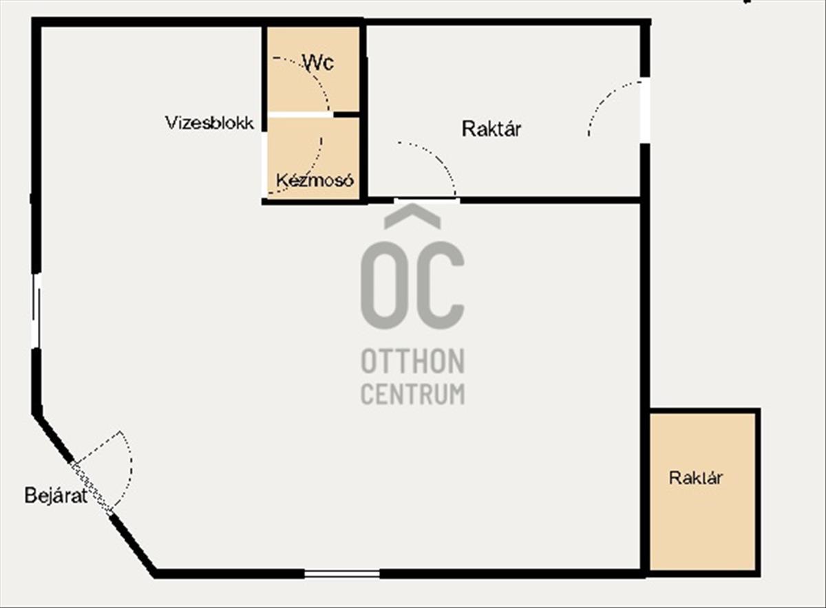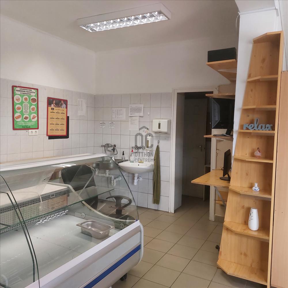 Helyiségei: nagy eladótér, vizesblokkrész az eladótérben, mosdó helyiség, egy tágas belső raktárhelyiség, és egy külső udvarról nyíló raktár.