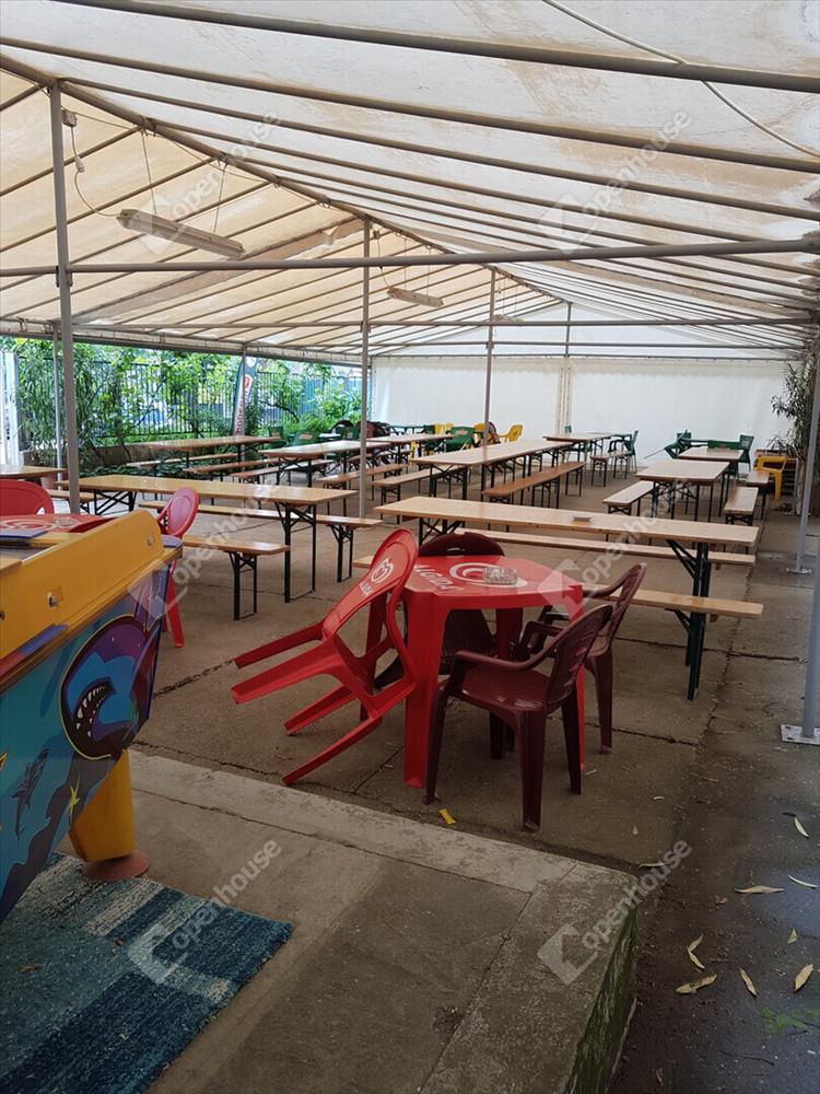 150 m²-es fedett, sátorozott terasz a kerthelyiségben – a sátor az új tulajdonosé marad