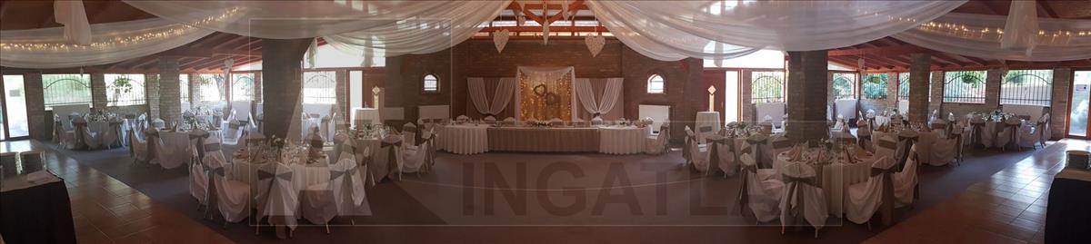 A 364 m2-es rendezvényterem és a 100 m2-es étterem kiváló esküvői helyszín a vendégek fogadására.