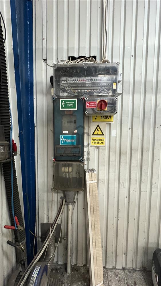 A műhely 2 beállásos, egyik szerelőaknás, ipari árammal, 100 m2 alapterületű.