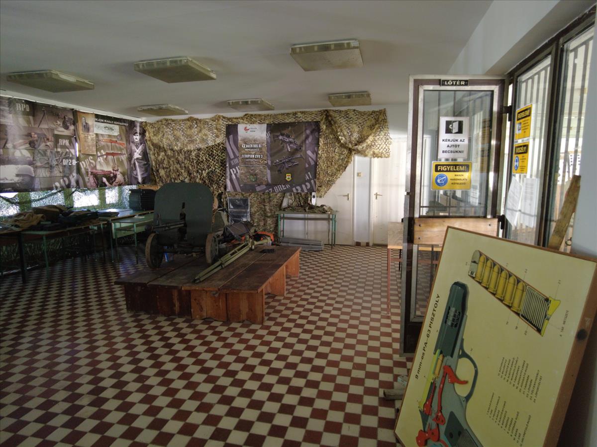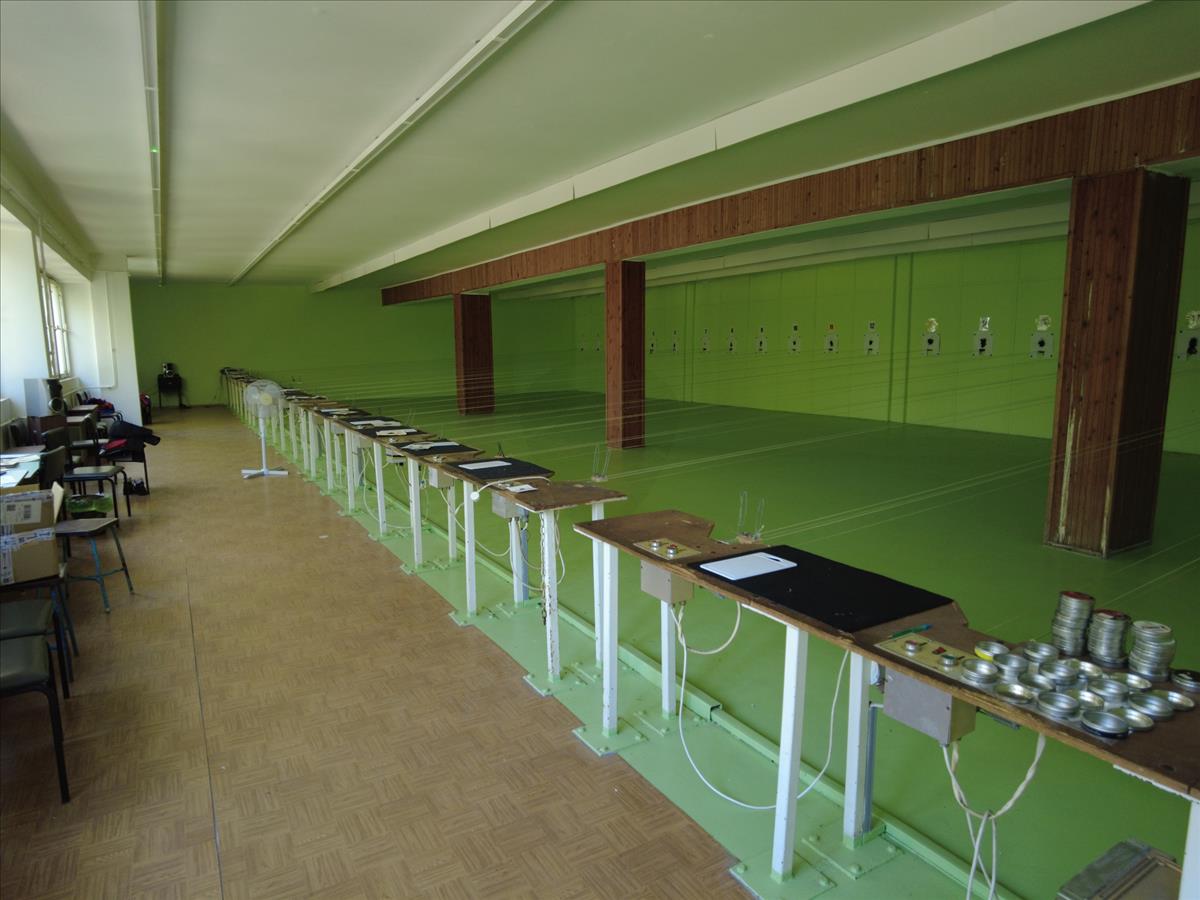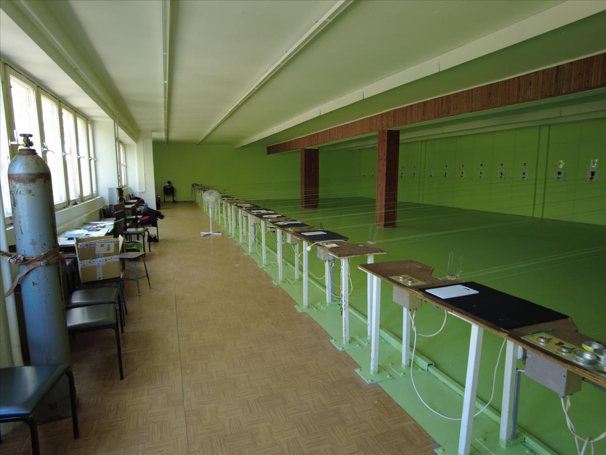 Az épület emeletén található a 20 lőállásos, fűtéssel és motoros célmozgató berendezéssel rendelkező légfegyveres lőtér. Mellette zárt szoba, iroda, versenybírói szoba, 60 személyes oktató terem és férfi-női mellékhelységek.