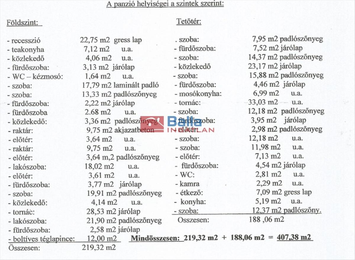 Tamásiban, a termál fürdő szomszédságában, 1062 m2 nagyságú, összközműves területen, 408 m2- 12 szoba, 10 fürdőszoba, 2 konyha, étkező, közlekedő, borospince helyiségekből álló- ingatlant.