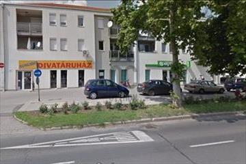 A két üzlethelyiség csak egyben eladó, területük 367 m2 és 385 m2. a két bérlő egy nemzetközi üzletlánc, illetve egy pénzintézet.