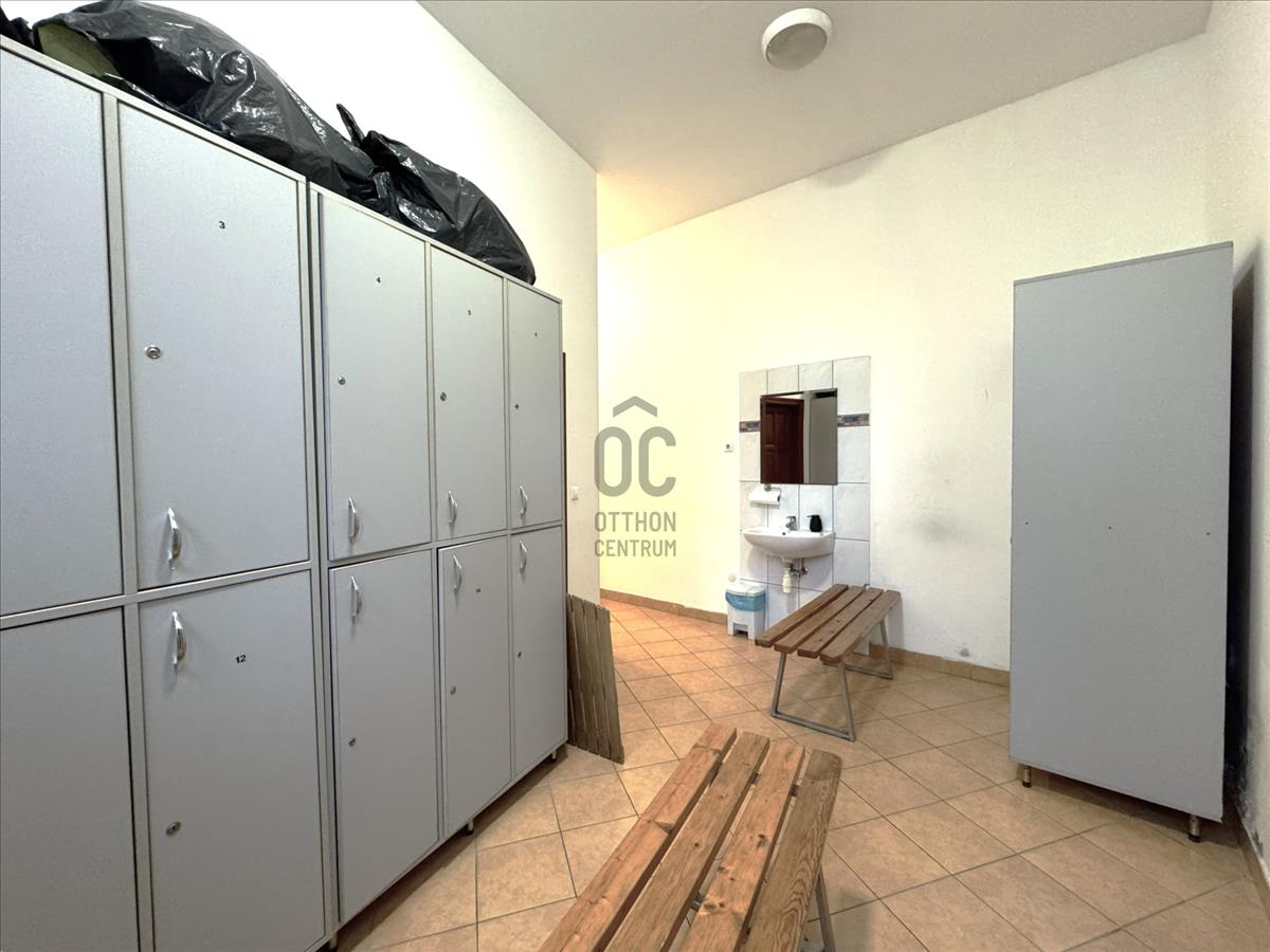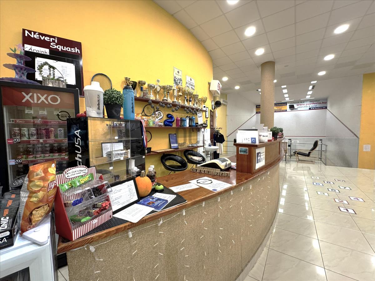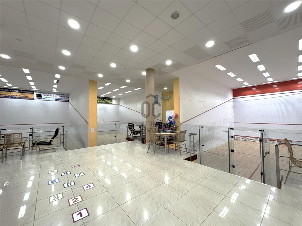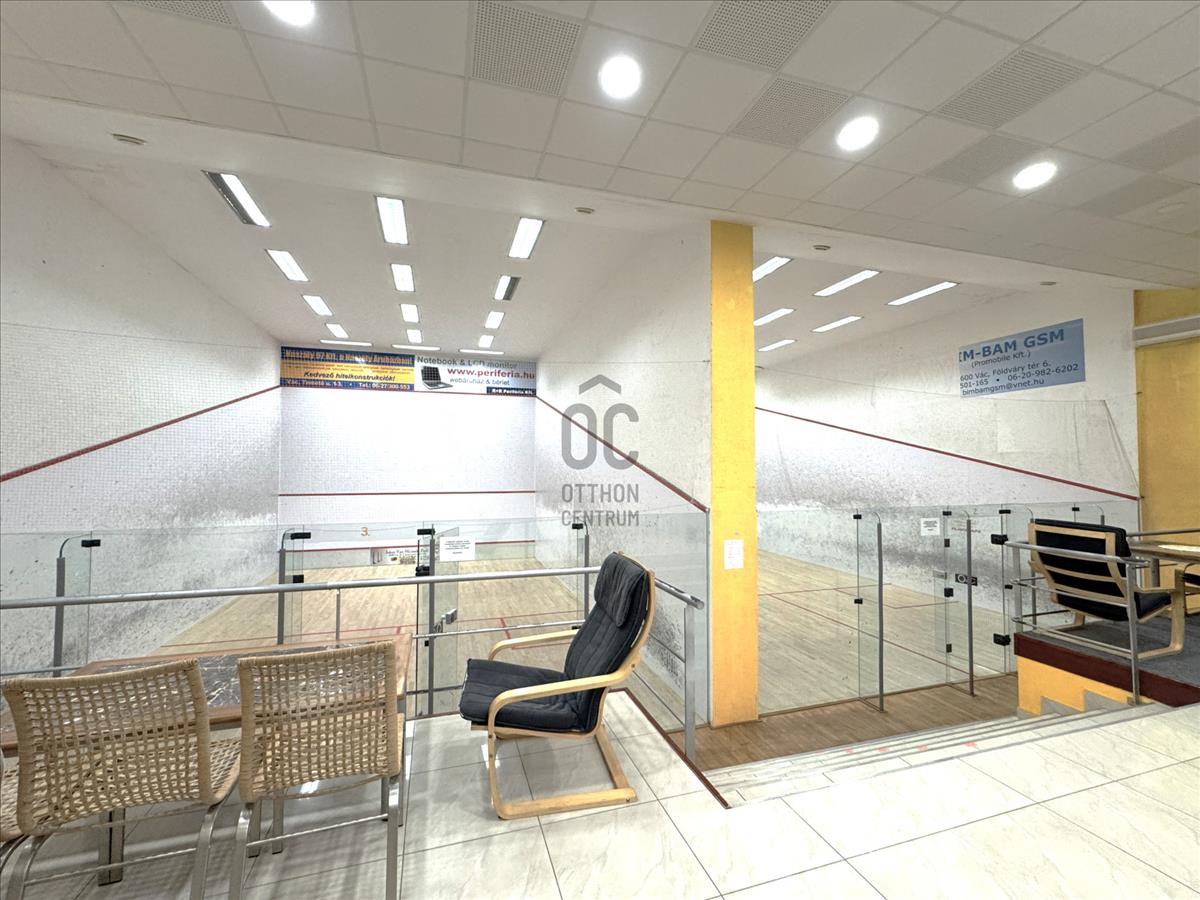 - Öltözők, mosdók, szauna, személyzeti és raktár helyiség, illetve külön gépészet is ki lett alakítva az egy légterű hatalmas közösségi tér és 3 squash pálya mellett.