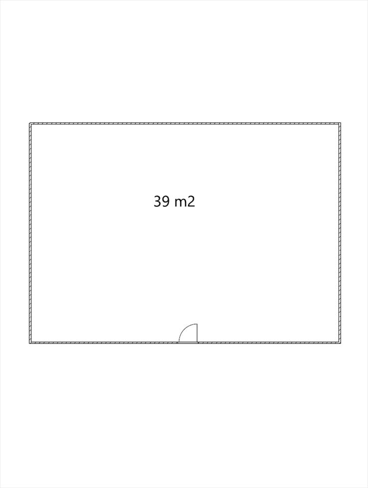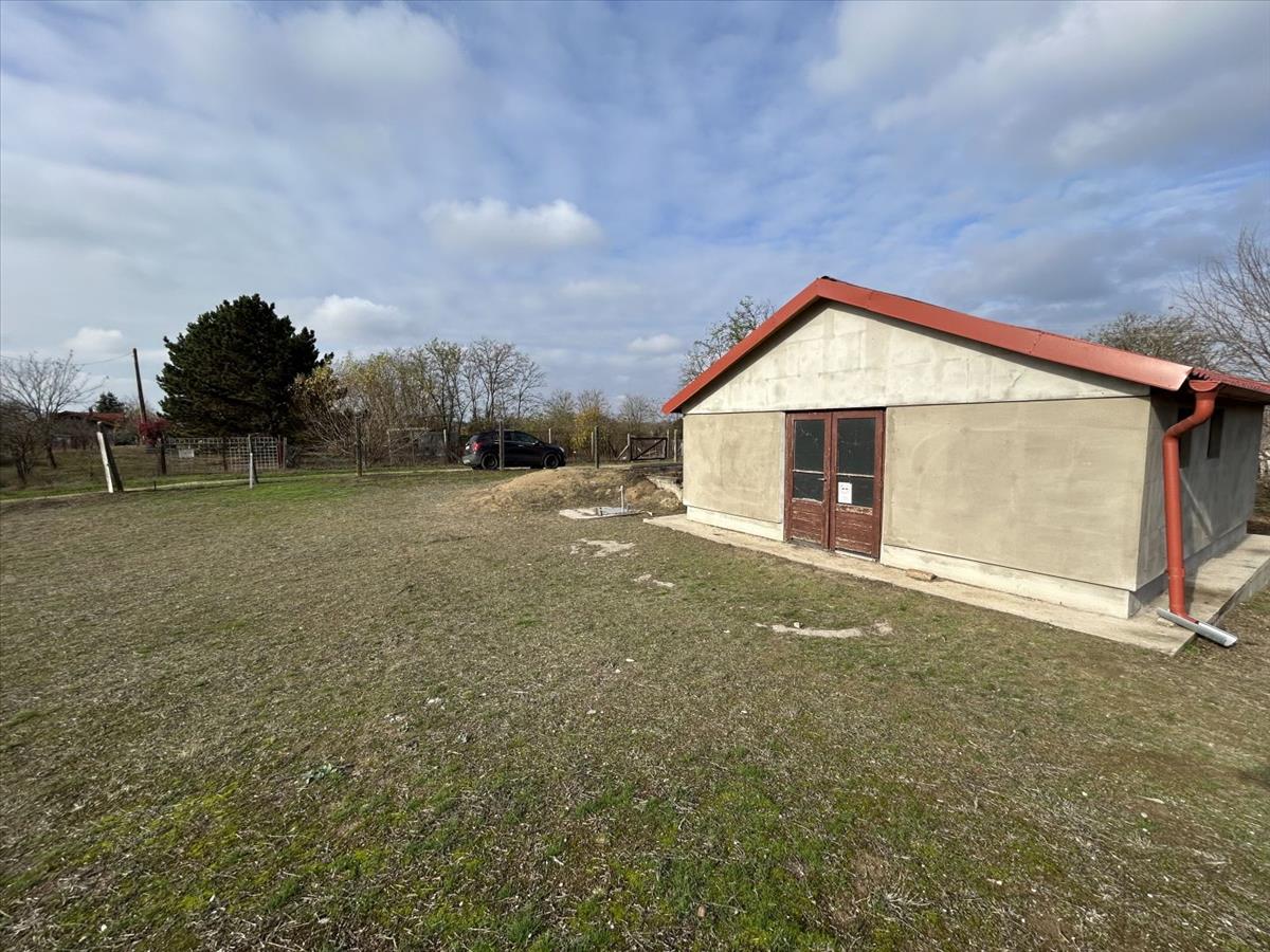 A telken található egy 39 m2 területű könnyűszerkezetes betonalapzatú ház.
