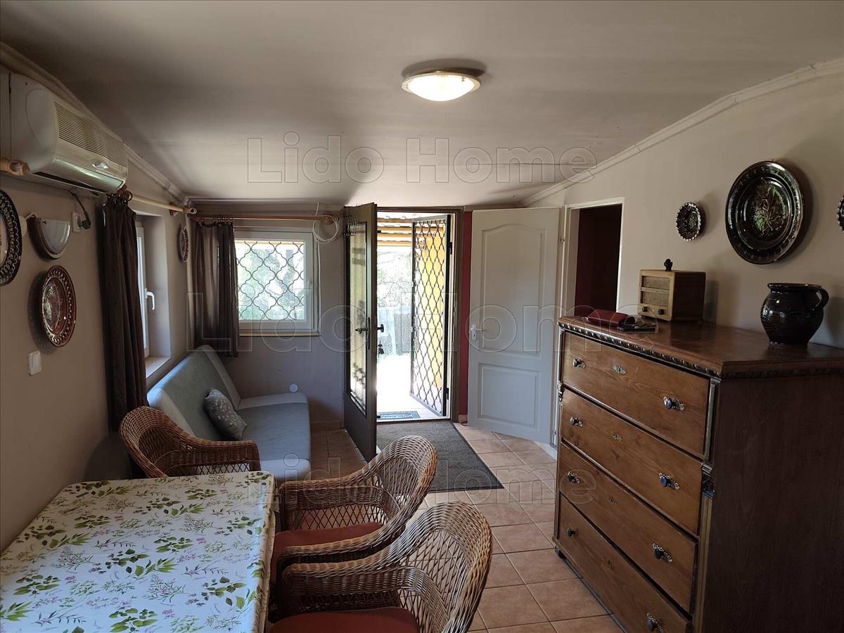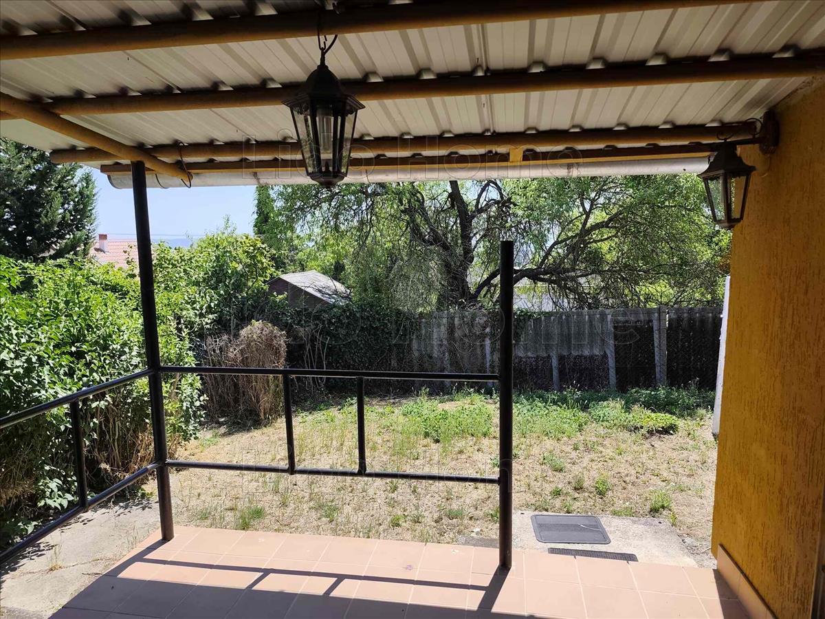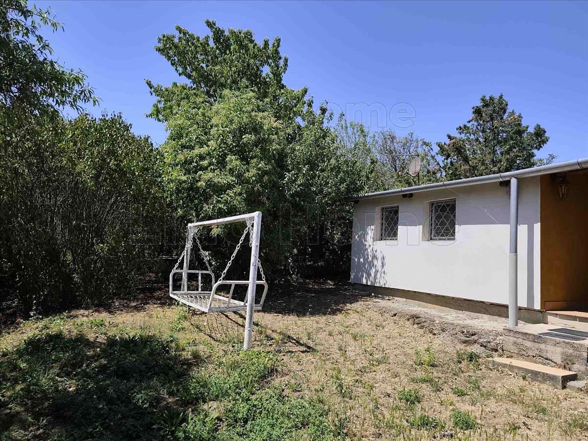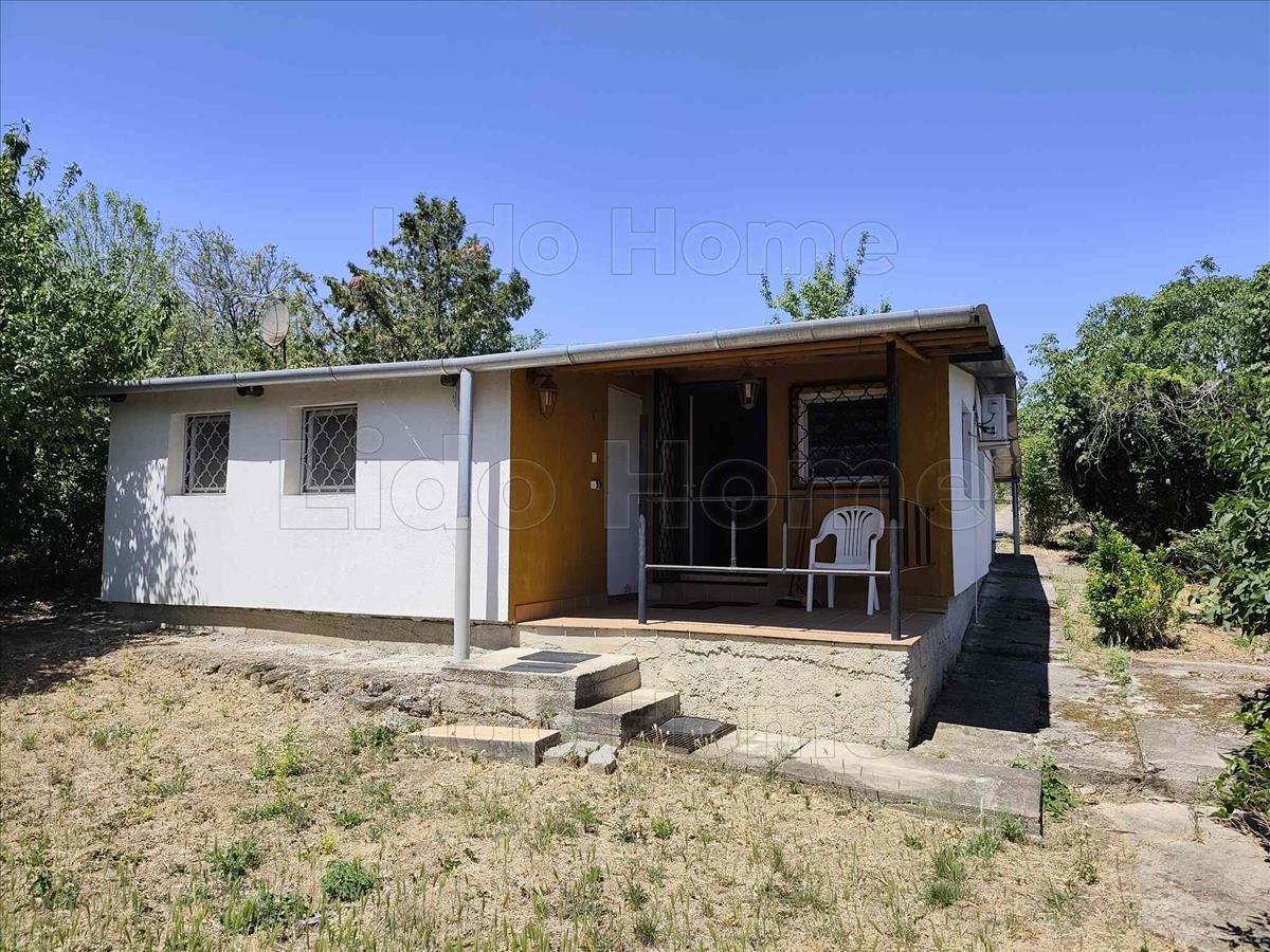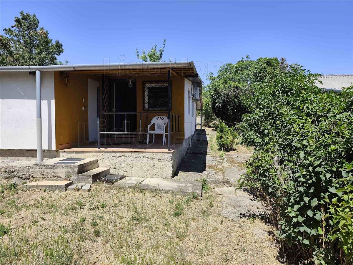-A telken jelenleg egy 50 m2 alapterületű, téglából épített, klimatizált nyaraló található, melynek helyiségei: 3 szoba, nappali, konyha, étkező, kamra, valamint egy fedett terasz és tároló.