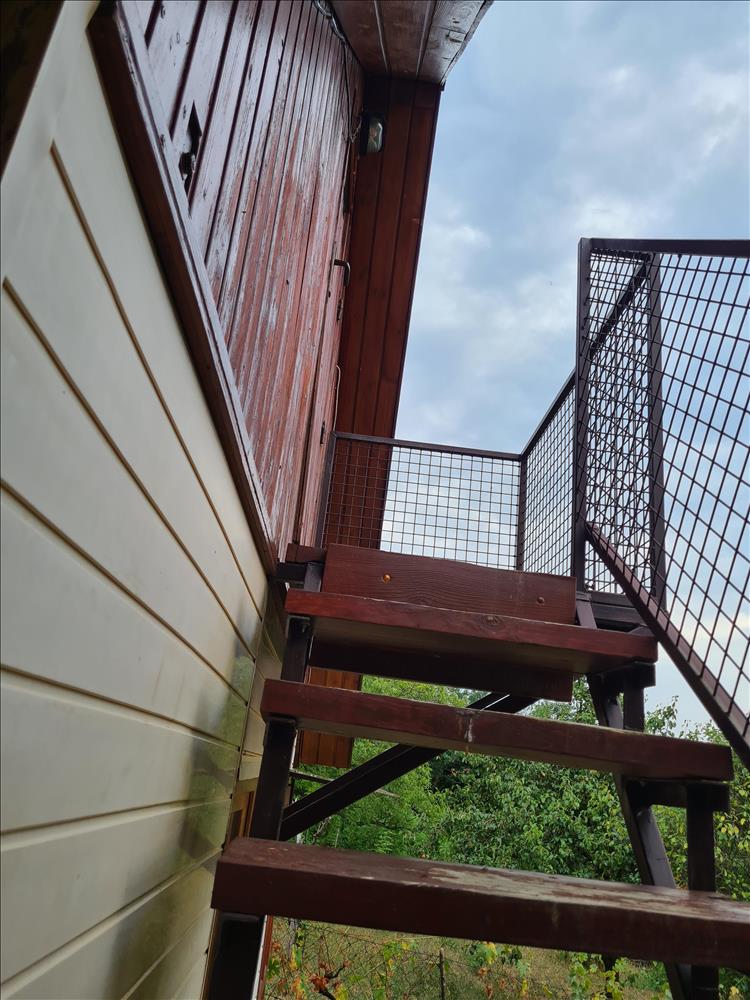 Az épület 2012-2013-ban épült minden építési szabályzatnak megfelelő engedélyezett építkezéssel, az épület a használatba vételi engedélyt megkapta. a háznak beton az alapja, zsalukő lábazati fallal. a függőleges falak 50 cm-enként 10/10 fa vázszerkezettel, kőzetgyapot szigeteléssel, belül osb, kívül lambéria burkolattal kerültek kialakításra. Belső oldalon párazáró fólia található. Fafödémes, 15 cm hőszigeteléssel, cserép fedéssel. a házban az alsó szint falazatának egy része borovi fenyő lambériával van burkolva.