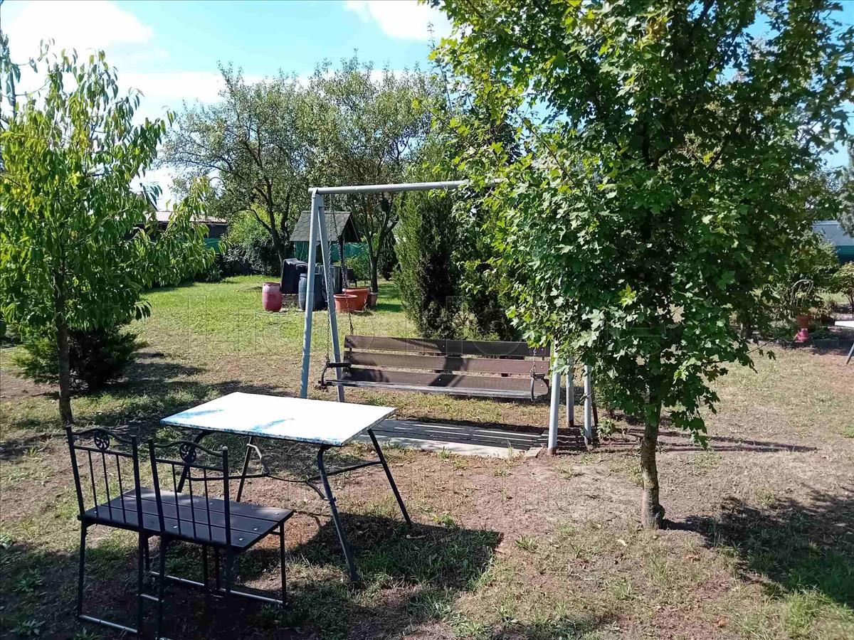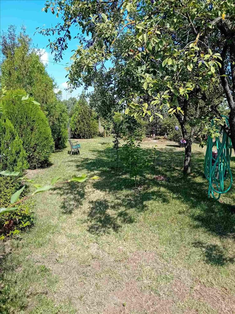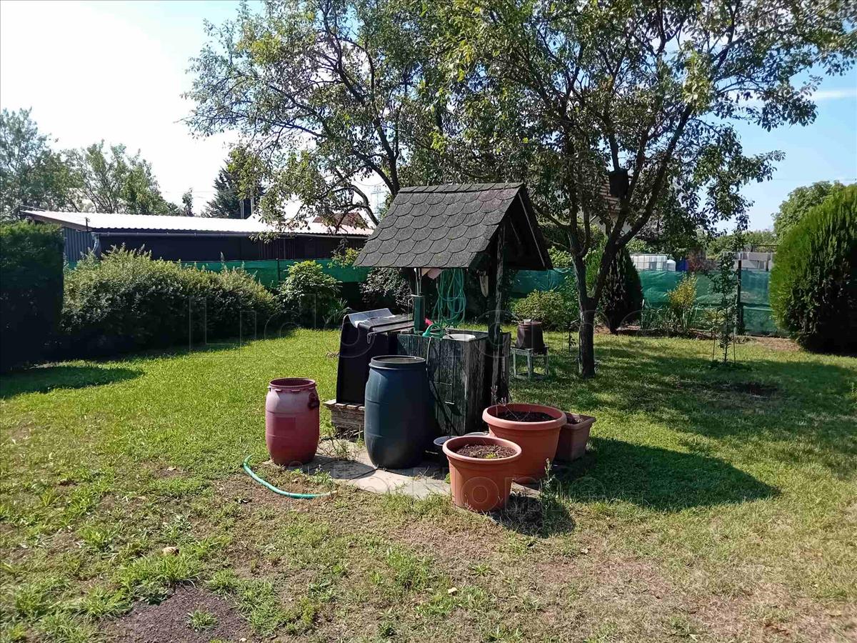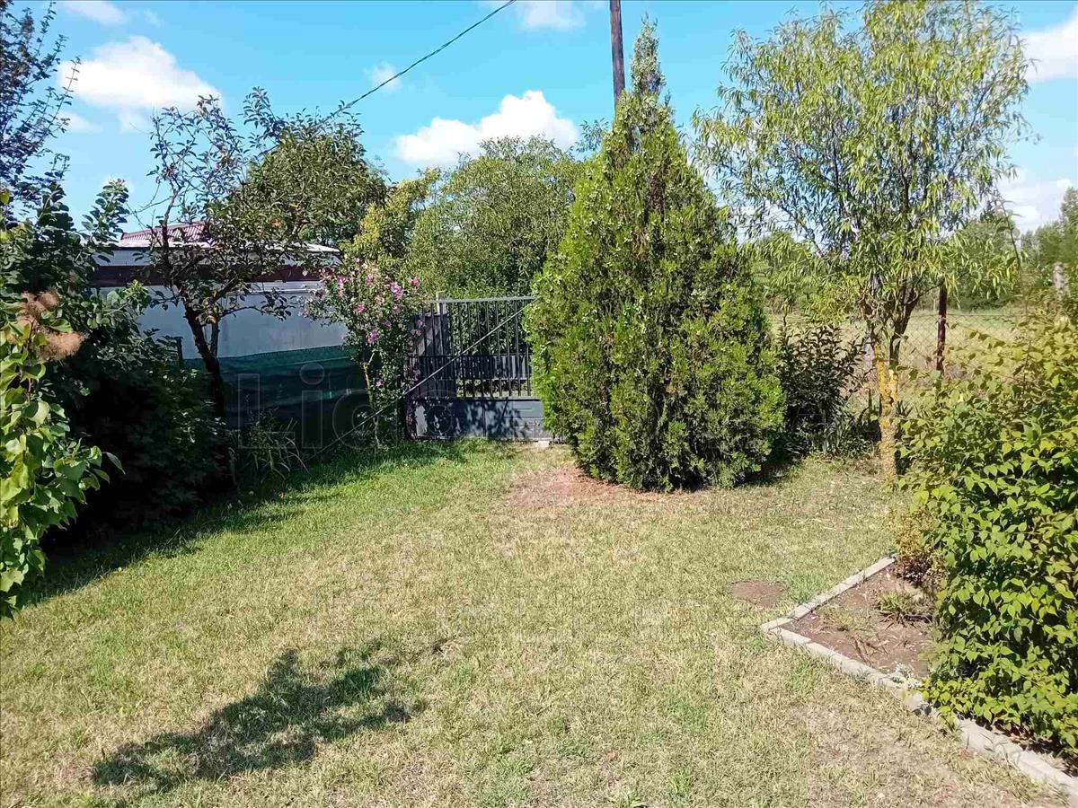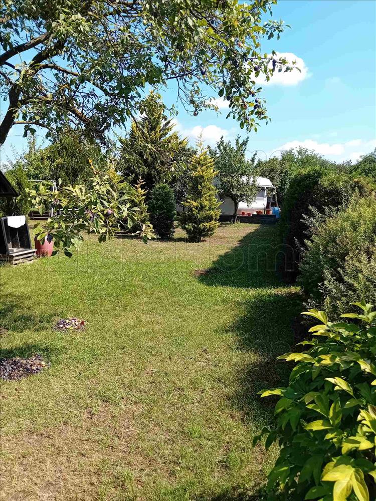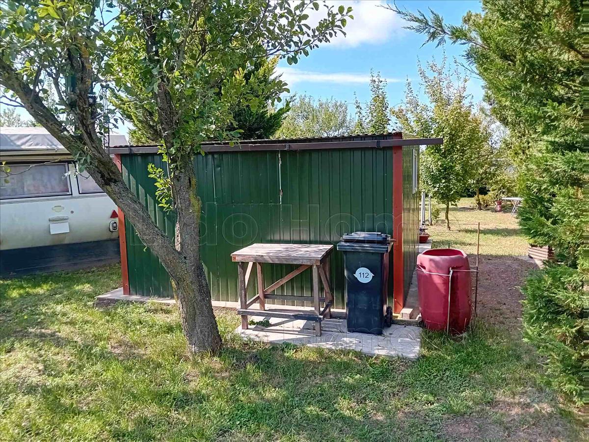 Maga a telek 826 m2, a telken található egy garázs 14 m2, valamint egy lakókocsi, ami az árban benne van.