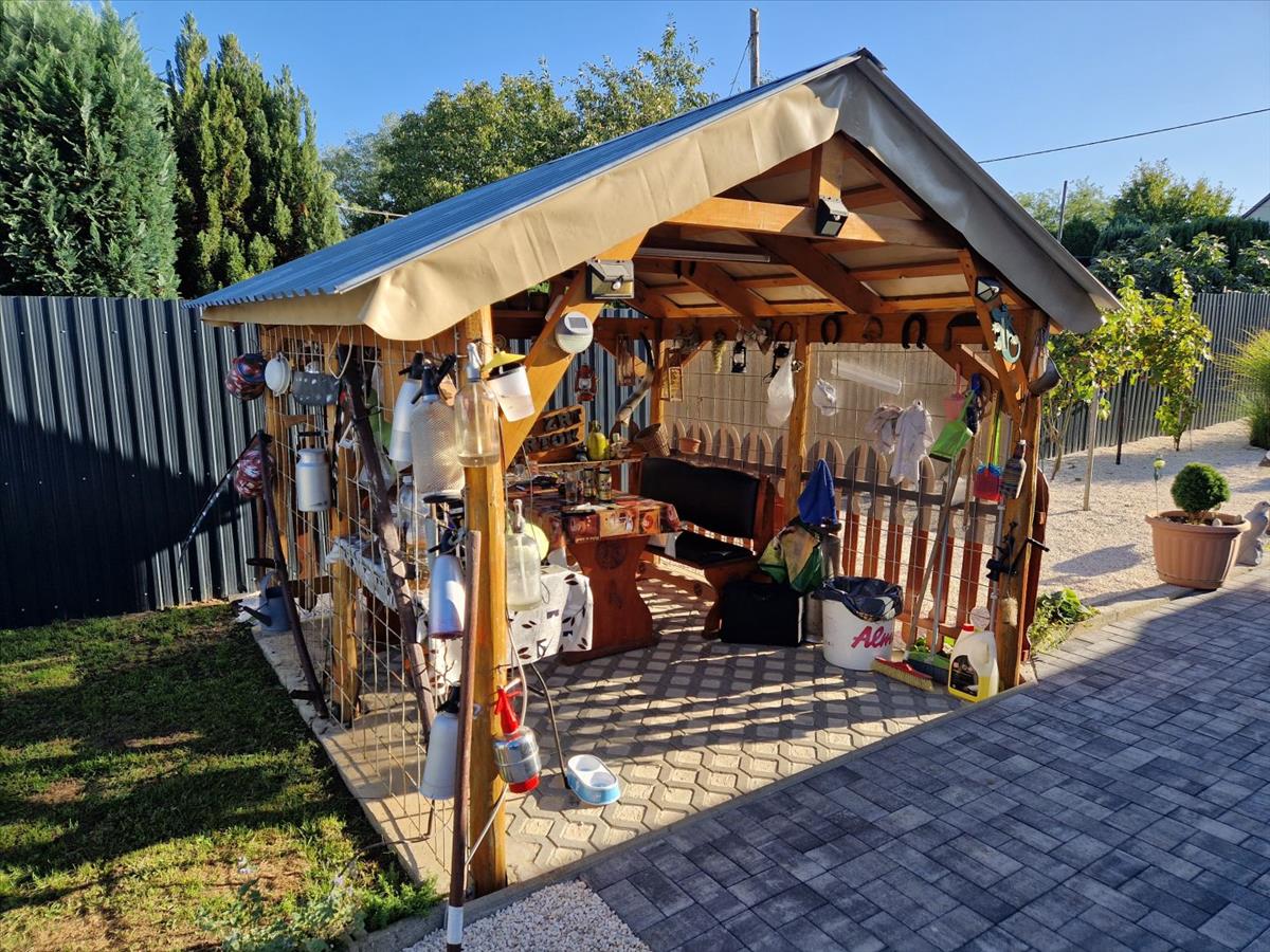 Győrság Halomalján ( Bercel ) eladó egy 1200m2-es záertkerti besorolású ingatlan. ( Művelési ág alól kivett) Az ingatlanon található egy nettó 57m2-es új építésű könnyűszerkezetes, jól szigetelt, állandó lakhatásra alkalmaz ház, amely egy előszobát, gardrobot, két szobát, konyhát, fördőt wécét foglal magába. a fűtésről egy inverteres splitklíma, valamint infrapanel és kandaló gondoskodik. a ház részben alápincézett. Az udvaron helyet kapott egy kiülő, nyárikonyha, dupla lemezgarázs, kerti sütögetős hely, fóliasátor a kertbe stb. Az udvar részben térkövezet valamint az előkert ízlésesen kialakított. Az ingatlanba 32a ki van építve, új fúrt kút és egy 5m3-es szennyvíztartály.