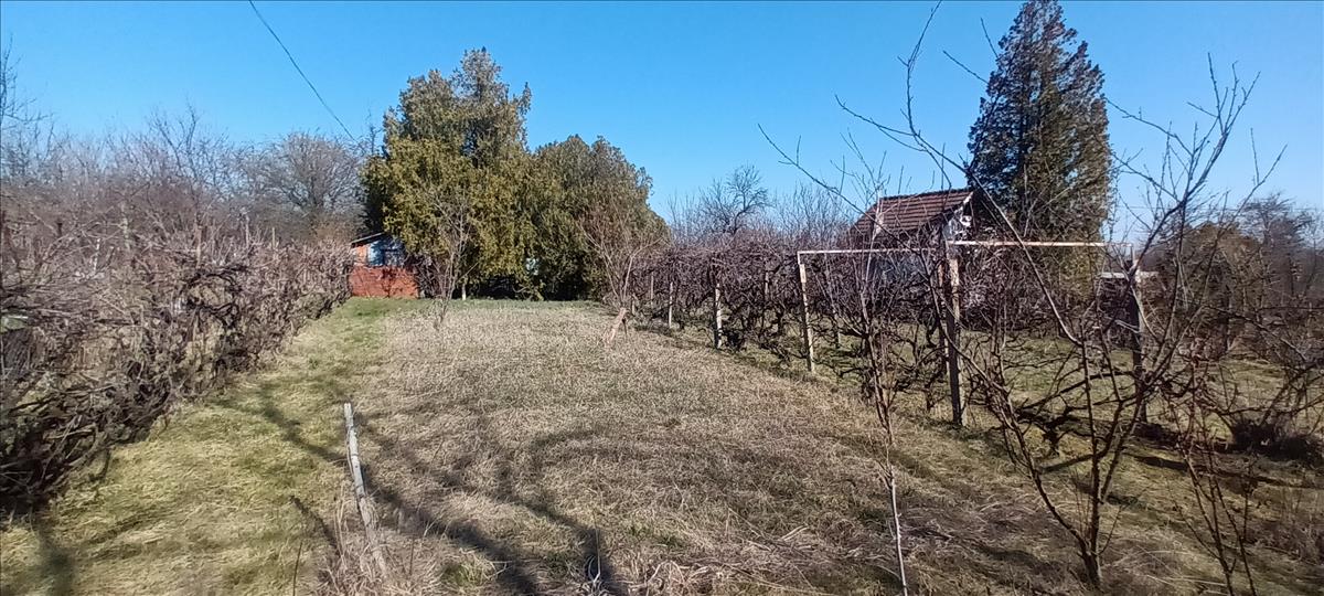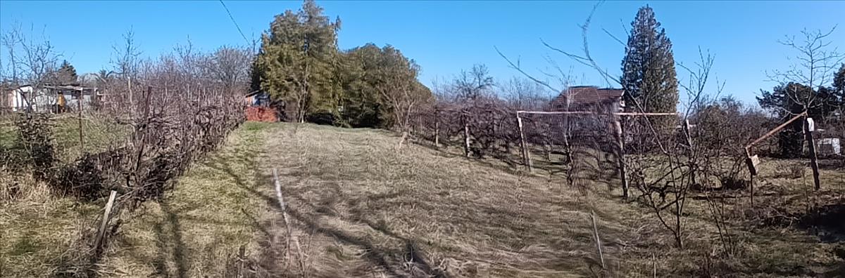 Telek termő gyümölcsössel és szőlővel