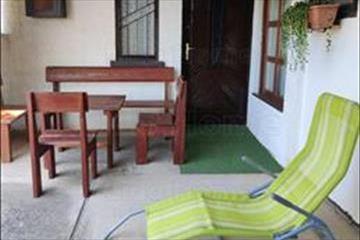 -a telken található egy 21 m2-es tégla házikó, 10 m2-es fedett terasszal