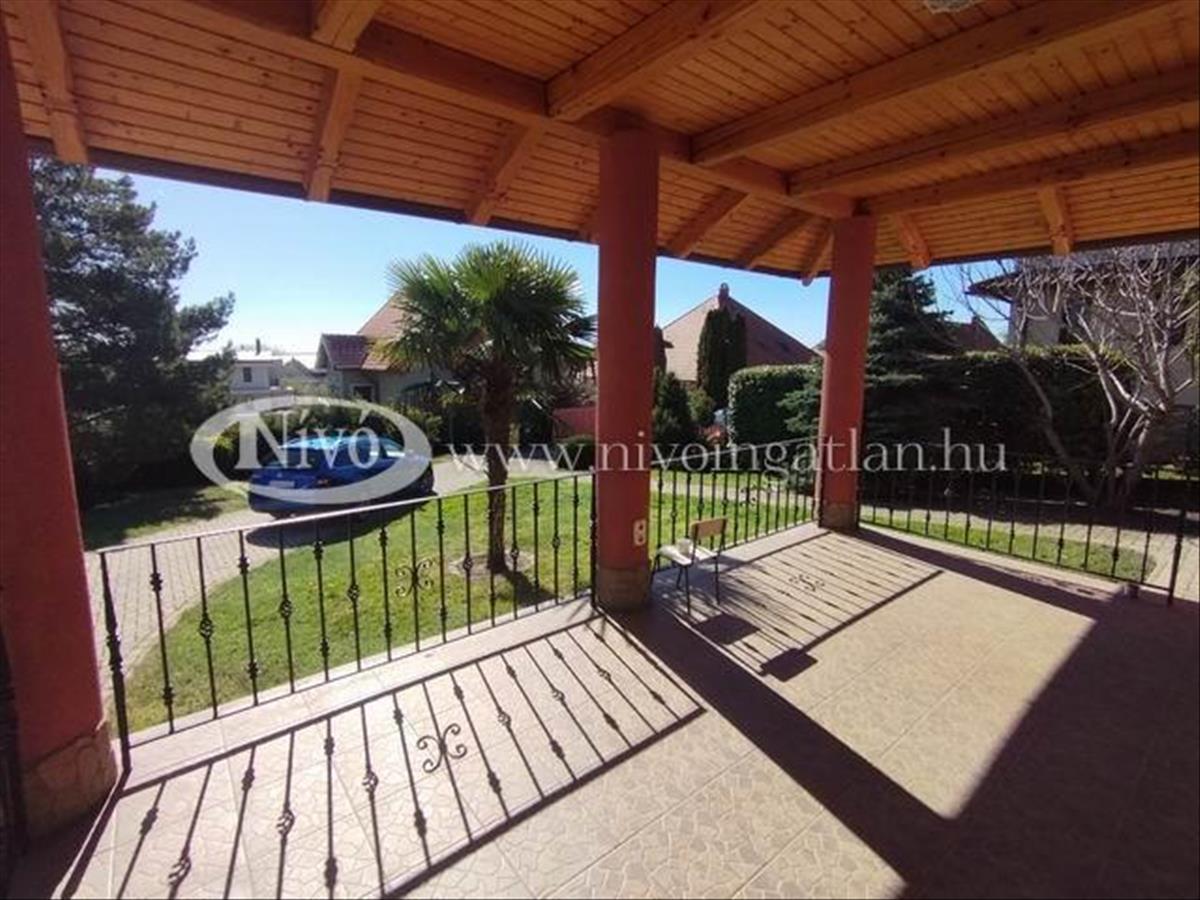 A ház 970 m2-es parkosított, körbekerített telken van, fedett kocsibeálló tartozik hozzá.