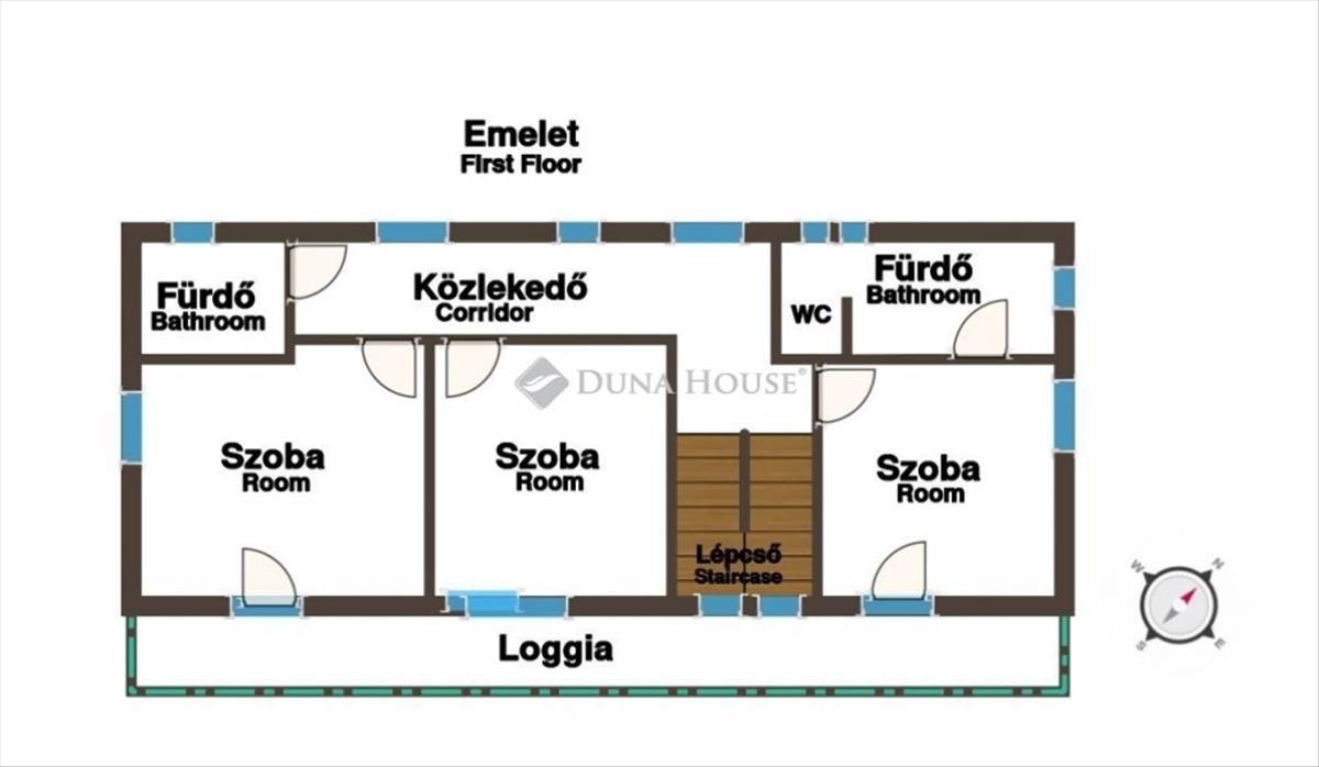 A ház 180 m² lakóterülettel + garázzsal, valamint 15 m²-es terasszal és 18 m²-es loggiával rendelkezik.