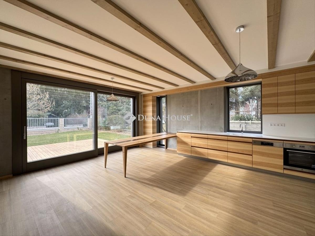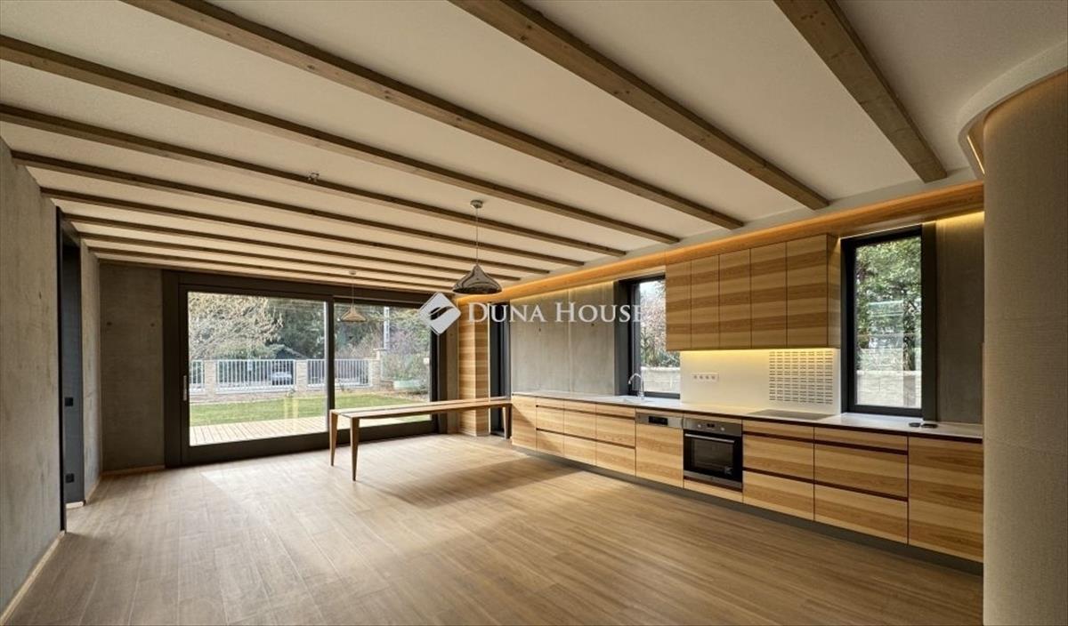 Az ingatlan a modern építészet, japán ihletésű letisztult design és természetes anyagok harmonikus találkozása. a fa és látszóbeton elegáns kombinációja, valamint a nagy üvegfelületek világos, nyugodt és exkluzív lakóteret teremtenek.