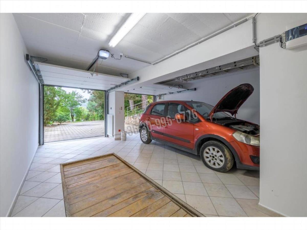 A kertszinten a kis lakás mellett helyezkedik el a dupla garázs, a kazánház és egy tároló.