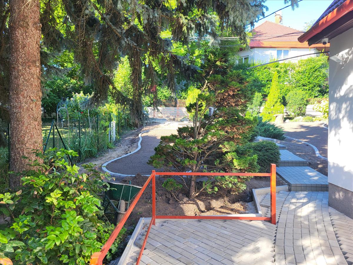 Bp. , III. kerület, Táborhegy szívében, frissen felújított, szigetelt (10 cm), nappali + 2 hálószobás, teraszos (23 nm ), 100 nm -es önálló családi ház, 820 nm -es gondozott, automata locsolórendszerrel ellátott kerttel, a fotókon látható bútorzattal, hosszútávra kiadó.