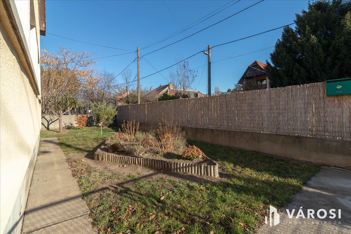 A kizárólagosan használható kertbe saját utcai bejárat vezet. a saját körbekerített kert miatt ez az ingatlan gyermekkel és kisállattal is ideális választás.