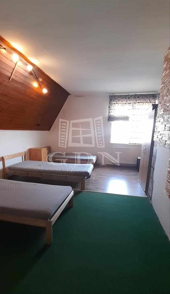 A kertes ház, csendes, de mégis jó helyen lévő, belső két szintes, össz. 150Nm-es, nappali + 5 szobás 13 férőhellyel hosszú távra kiadó.