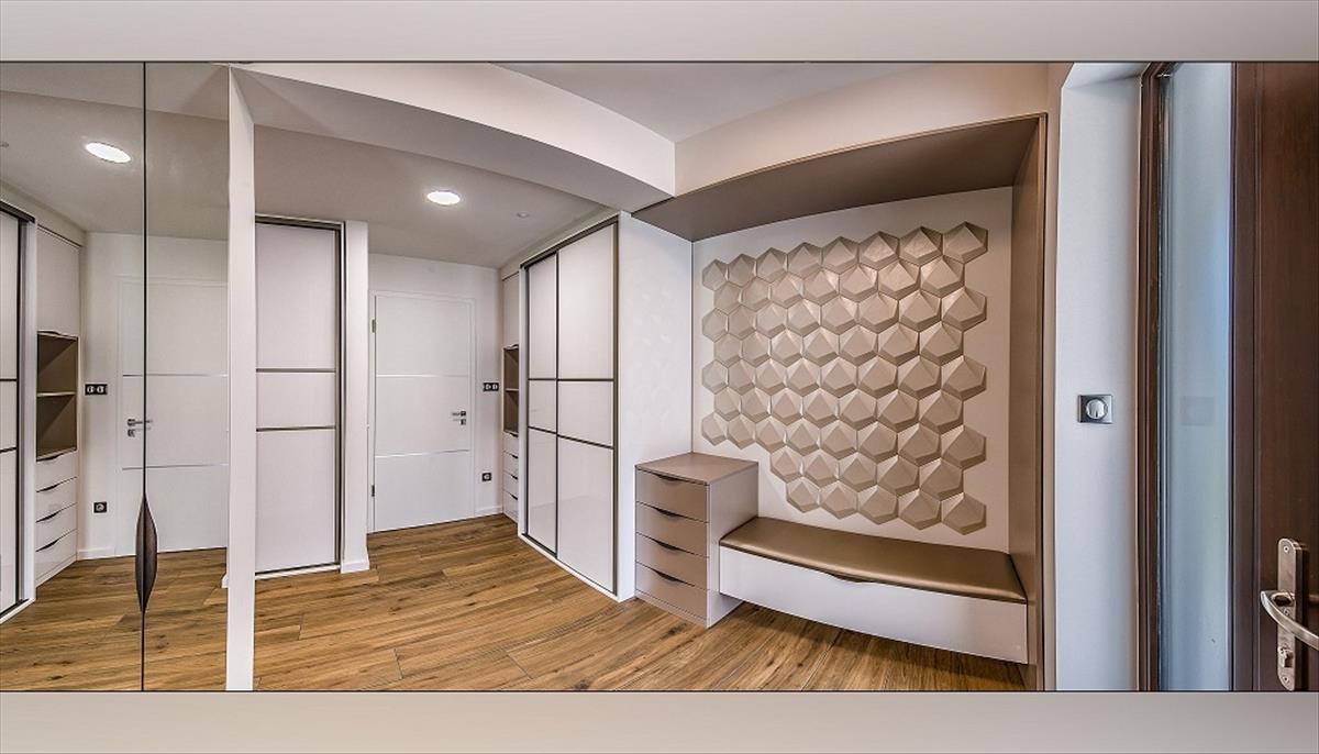 A főbejáraton keresztül egy igényesen berendezett előszobába érkezünk. Innen nyílik egy külön fürdőszobás vendég- vagy dolgozószoba.