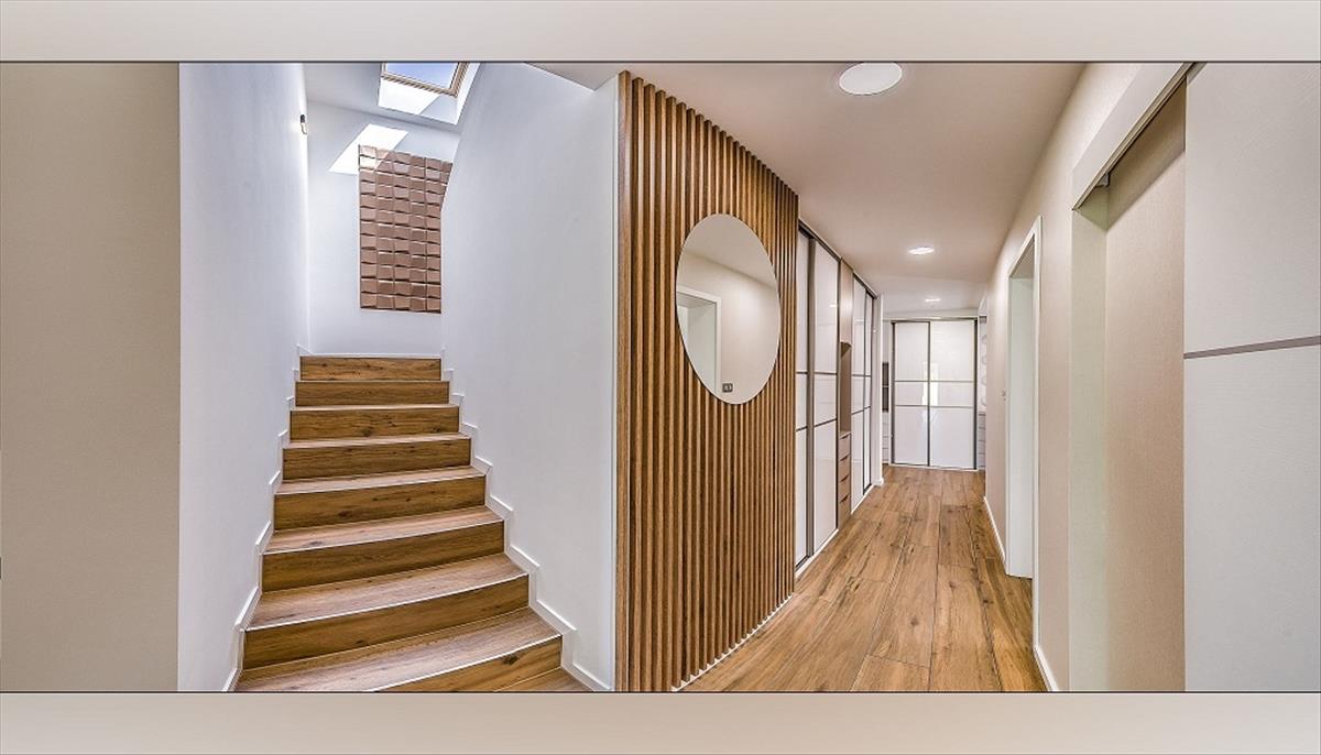Az emeleten 4 tágas, beépített bútorokkal ellátott szoba található. Az utcafronti szobák egy 36 m²-es teraszra nyílnak.