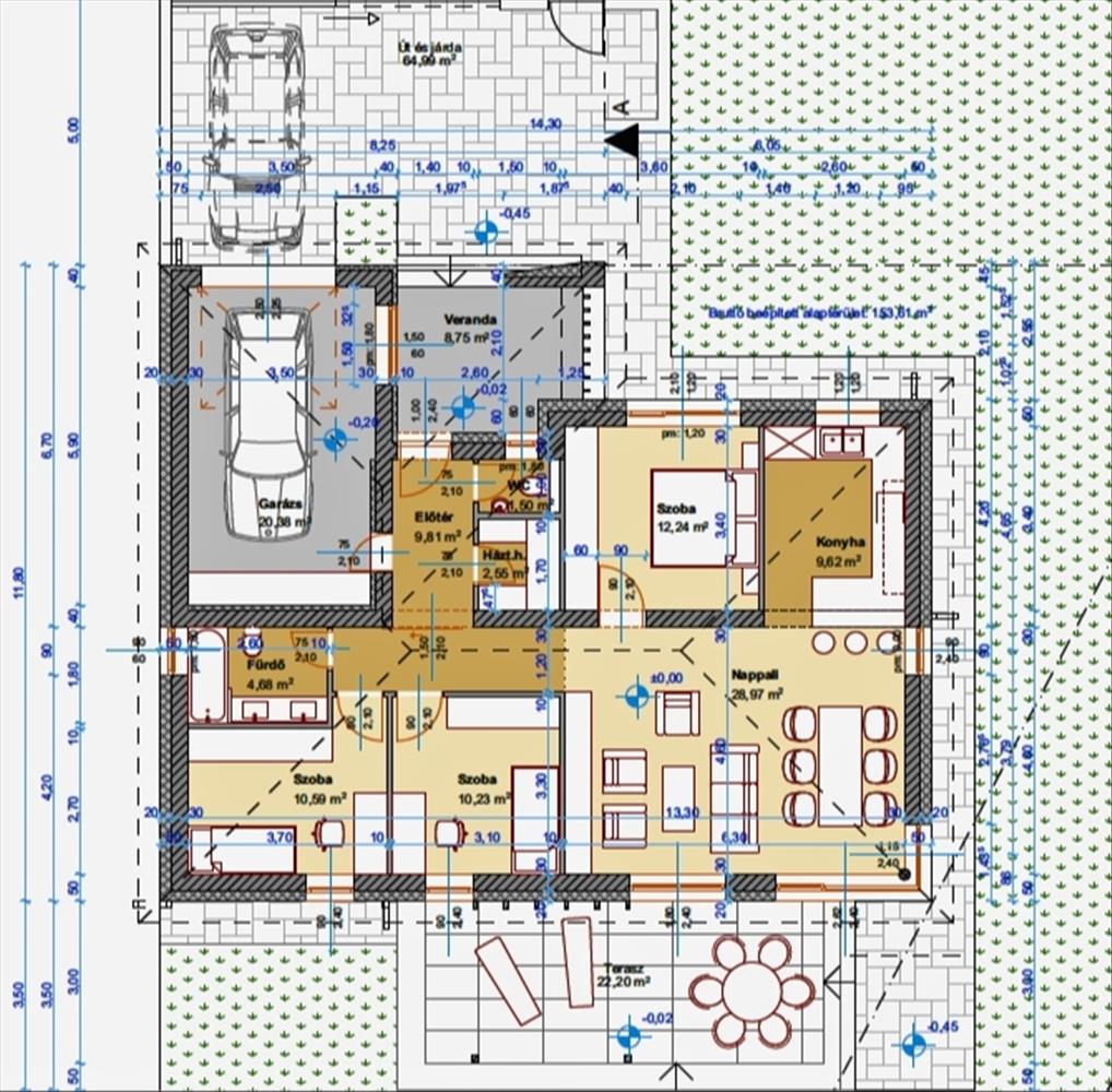 • 30 cm tégla falazat + 20 cm hőszigetelés