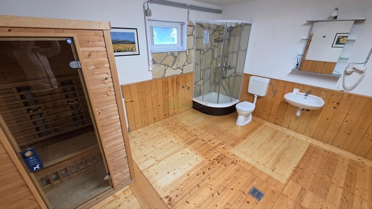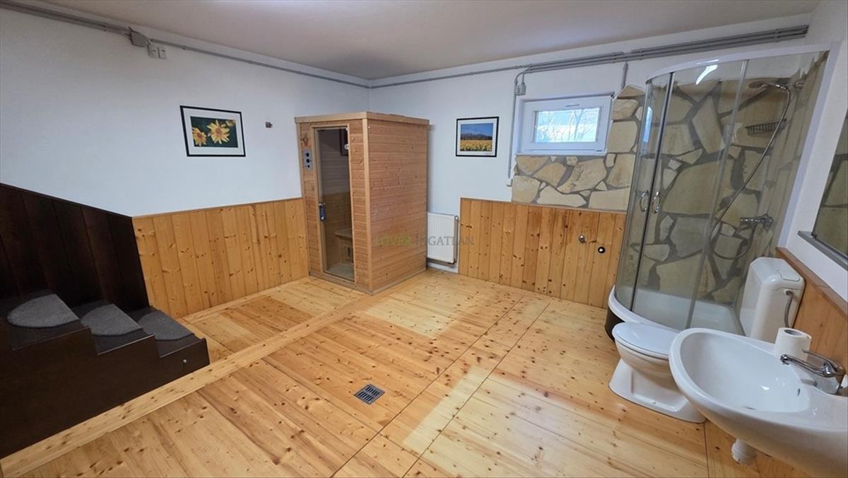 Soprontól 4 km-re, Harkán ( nem lakóparkban) kiadó egy kb. 1000 Nm-s telken levő földszintes, teljesen alápincézett igényes családi ház. a lakószinten ( 130 nm) amerikai konyhás nappali ( fatüzeléses kandallóval), 2 hálószoba ( egyik klimatizált), dolgozószoba, fürdőszoba ( kád, tusoló), wc, spájz, télikert és fedett terasz található. Ablakokon alumínium redőny + szúnyogháló. Házon belül megközelíthető a pinceszint, ami lakásminőségben megépítve : 70 nm-s garázs, 20 nm-s mosókonyha ( szaunával), kazánház ( gázkazán + 500 l-s meleg víz tartály, vegyestüzelésű kazán, vízlágyító ), 10 nm-s fatároló és egy 30 nm-s konditerem található. a kertbe - ami képeslapra kívánkozik, olyan szép - mindkét szintről ki tudunk menni. Különböző fák, növények, sziklakert, természetes tó, 3 kút amiről működik az automata öntözőrendszer. a tetőn 6. 5 KW-s napelem van ami szaldós rendszerben működik, igy az ingatlan rezsije nagyon kedvező. . a ház riasztóval, kamerarendszerrel van ellátva. Utcán további 4 autó parkolása lehetséges.
