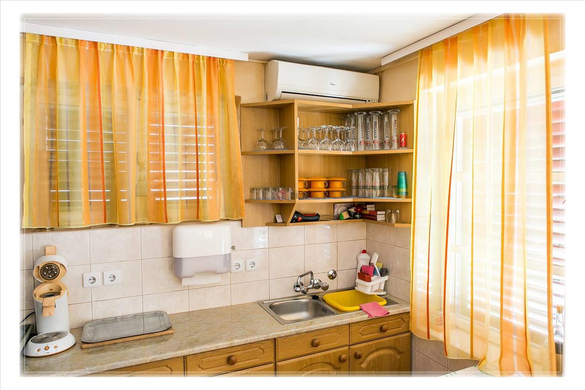 Ez a rész egy új építésű szociális blokk, hatalmas amerikai konyha, nyitva a féltetős teraszra, tálalókonyha, gardrób, vizes előtér, két wc, közlekedő. Az étkezéshez egy kb. 50 m2-es fedett előtér használható. a konyhában nagyjából minden létező konyhatechnikai berendezés rendelkezésre áll kb. 14-15 Vendég fogadása céljából. Hagyományos nagyméretű kemence és forgó grillsütő, lávaköves grill, bográcsok, sütők, jelentős hűtőkapacitás állnak rendelkezésre. Kamerás parkoló összesen három személygépkocsi részére.