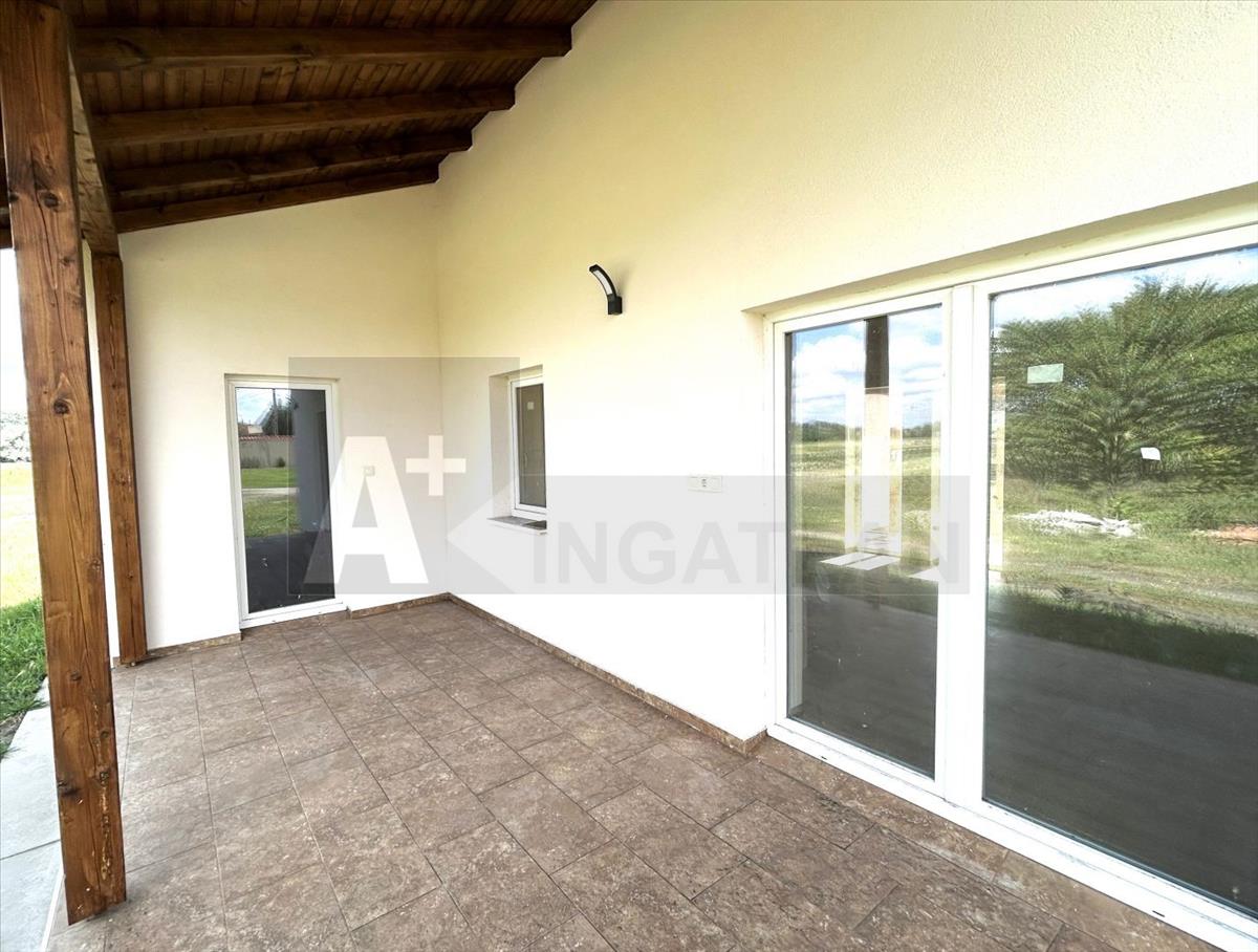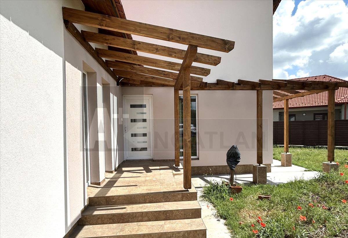 A ház központi tere a tágas nappali amerikai konyhával és étkezővel, melyből közvetlen kijárat nyílik a 15, 9 m²-es fedett teraszra.