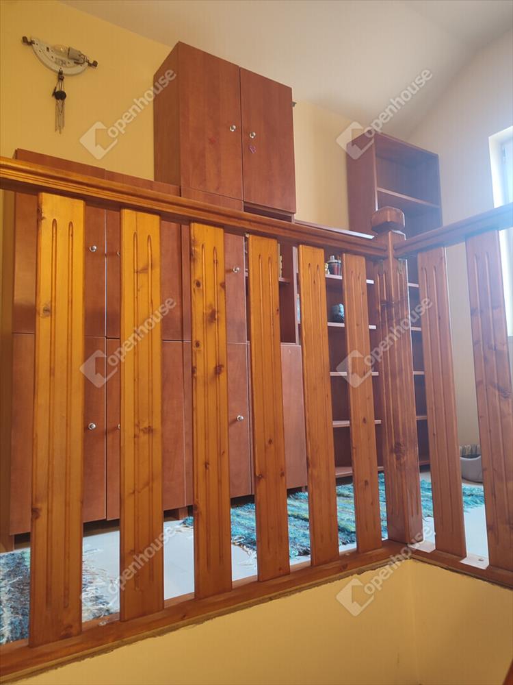 -Az alsó szinten egy nagy méretű nappalin kívül, kettő szoba, kettő fürdőszoba, az előtér, a konyha és a kamra található.