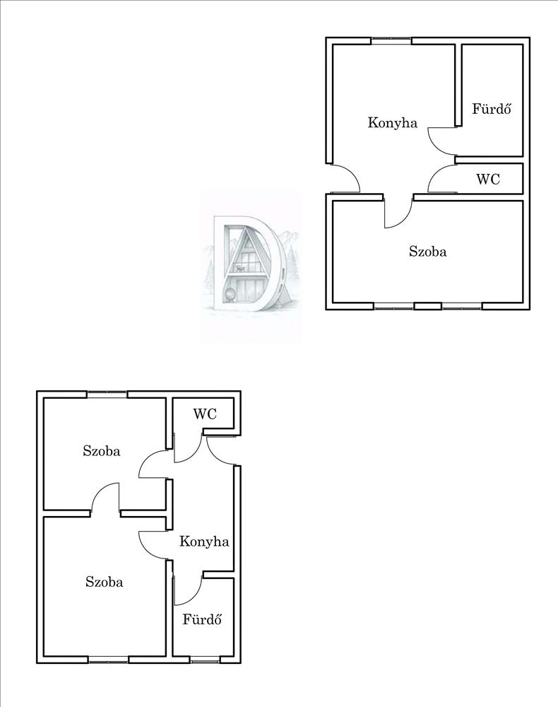 Az egyik épület körülbelül 50 négyzetméteres, 2 szobás, a másik épület körülbelül 45 négyzetméteres, 1 szobás. Az épületek frissen felújított állapotúak, elektromos fűtéssel rendelkeznek.