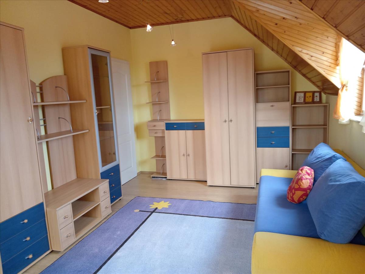 -A tetőtér helyiségei: közlekedő, 3 külön nyíló hálószoba, nappali, tágas fürdőszoba, WC-vel, sarokkáddal.