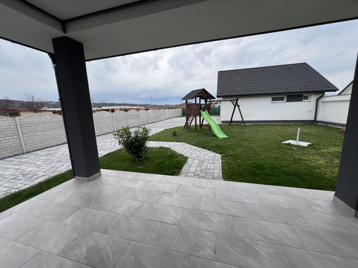 Nyúlon zöldövezeti, természeti környezetben, új építésű családi házak szomszédságában, 900 m2-es, parkosított, részben térkövezett, saját játszótérrel rendelkező telken, 2020 - ban épült, bruttó 192 nettó 96 m2-es, kiváló alaprajzi elrendezésű, minőségi anyagokból kivitelezett, 3 szoba + nappalis családi ház, 80 m2-es dupla garázzsal hosszútávra kiadó.