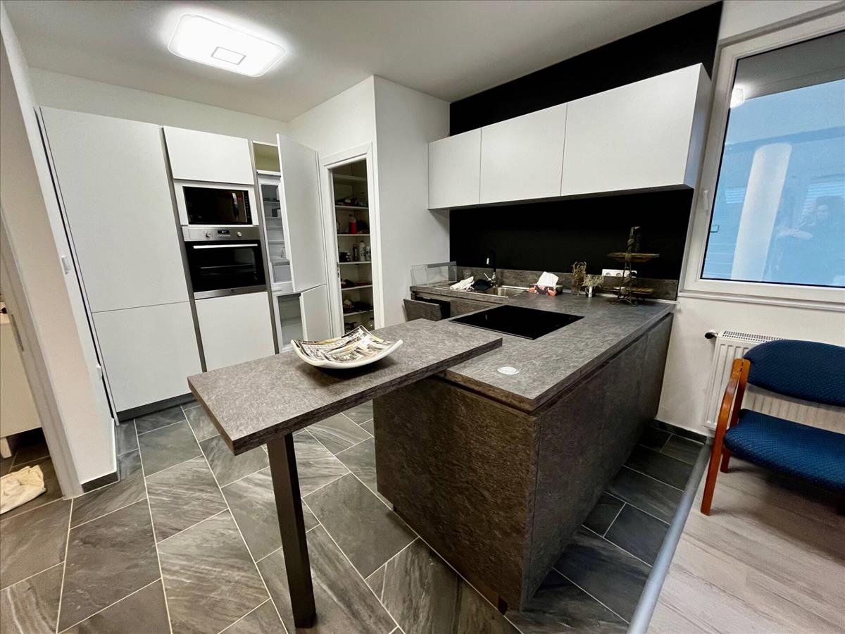 A lakóingatlan fontos része egy modern módon felszerelt konyha, többek között beépített mosogatógép, indukciós főzőlap, mikróhullámú sütő, beépített sütő, hűtőszekrény található benne.