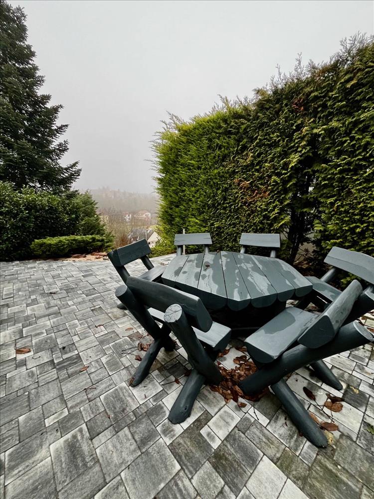 A teraszról gyönyörű kilátás nyílik az épületet körülvevő festői tájra, amely megalapozza az ott rendezett családi összejövetelek, sütögetések hangulatát.